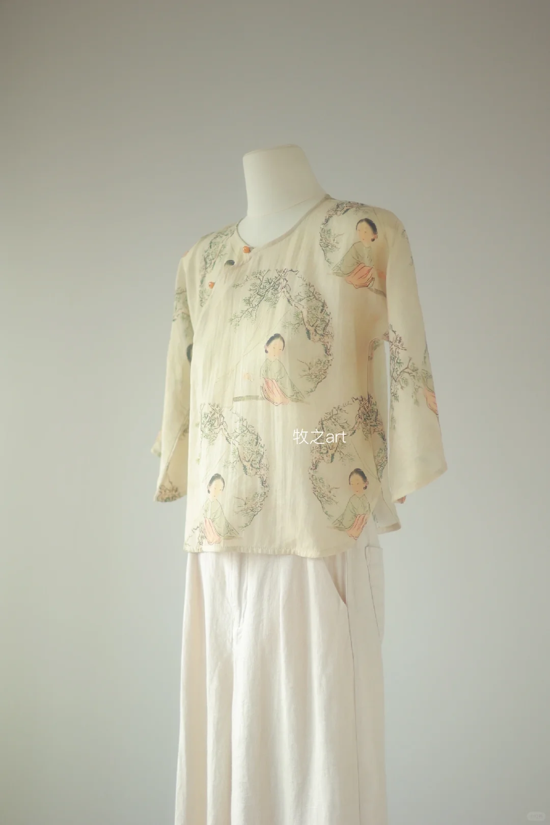 低眉手托腮,倚坐半窗开 面料是50%天丝50%苎麻 有麻纤维的吸湿透气,又有着丝纤维的丝滑舒适 版型受民国时期影响,全开襟倒大袖 民国小姐即视感 颜色也是温婉的 3️⃣码/现货库存 -