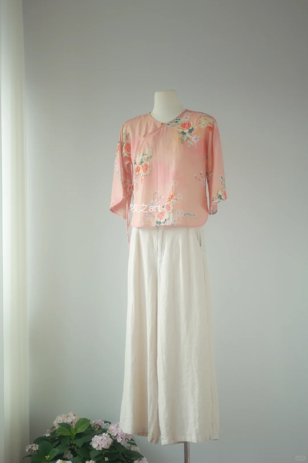 传统的倒大袖全开襟,整体版型是改良民国时期的,更日常些 面料是50%天丝50%苎麻 有麻纤维的吸湿透气,又有着丝纤维的丝滑舒适 颜色也是温婉的,白皮、黄皮、黑皮都适合 可以搭配苎麻裤子,日常休闲 也可以搭配半裙,会更仙一些~ 3️⃣码/现货库存 ~