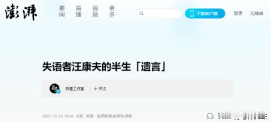 (信息来源:澎湃新闻 2022-10-25——失语者汪康夫的半生「遗言」)
