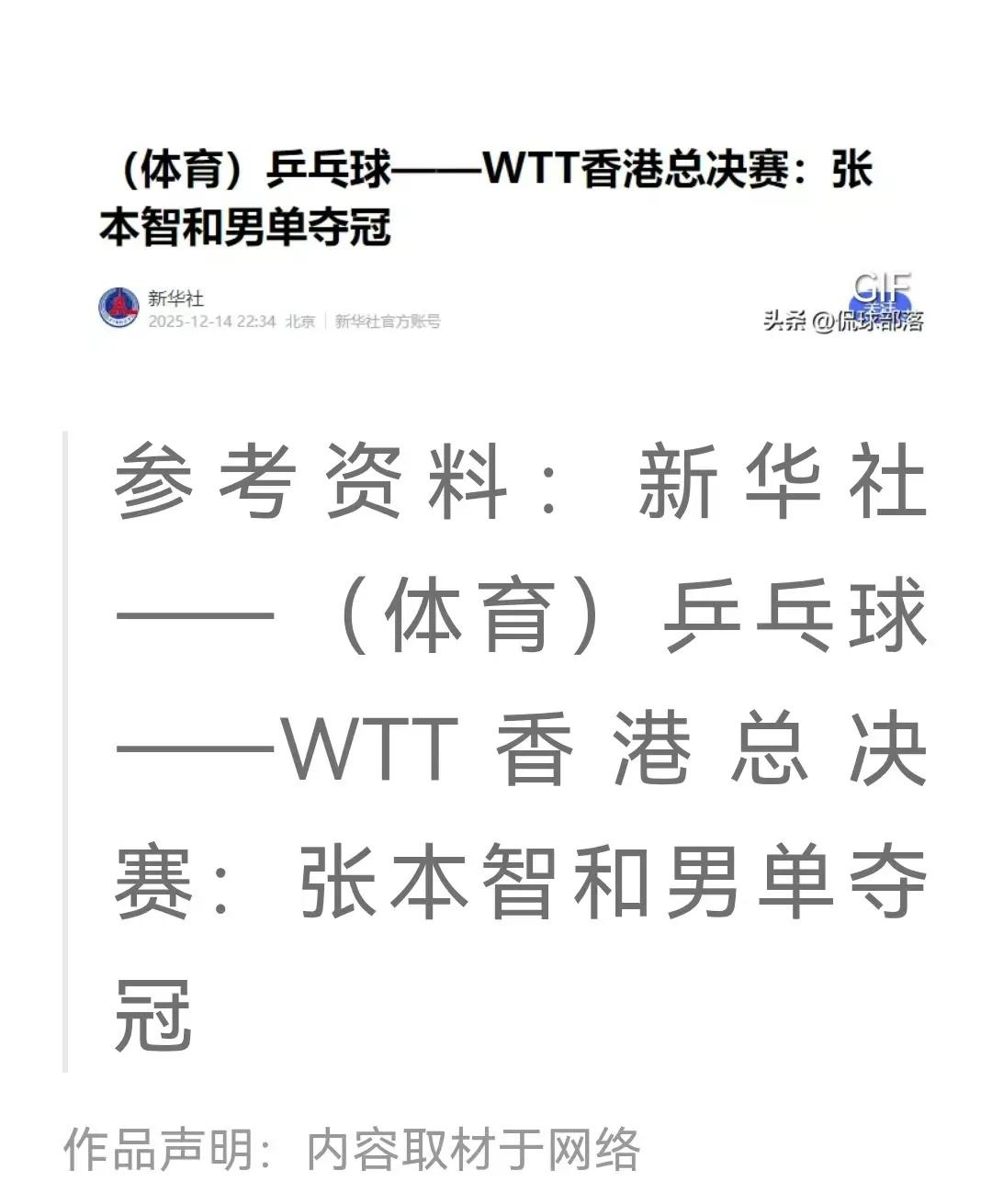 #WTT香港总决赛 #张本智和夺冠 #国乒 #乒乓球赛事 #体育头条