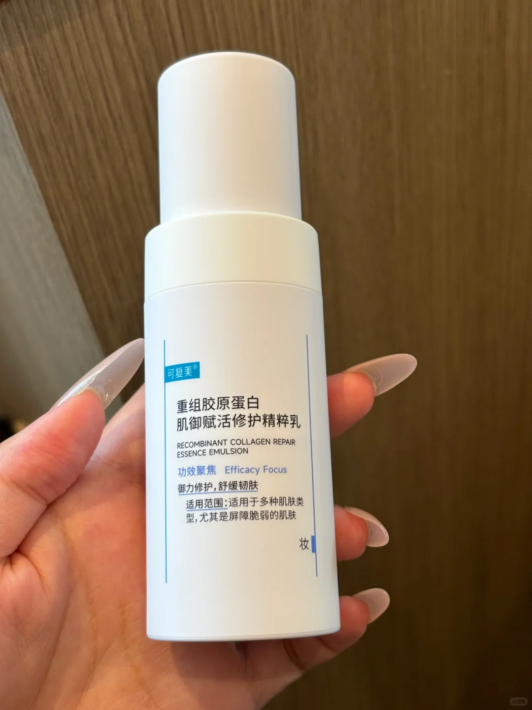 可复美真的不愧是修护届的领头🐑!市面上修护产品千千万,但是只有可复美胶原乳是我心中永远的白月光!!!!每次脸部出现屏障受损问题,可复美在手就能给我满满安全感!!!她们家的胶原乳都被我用空瓶子了真的能大胆的开麦了!!!!!!!!!