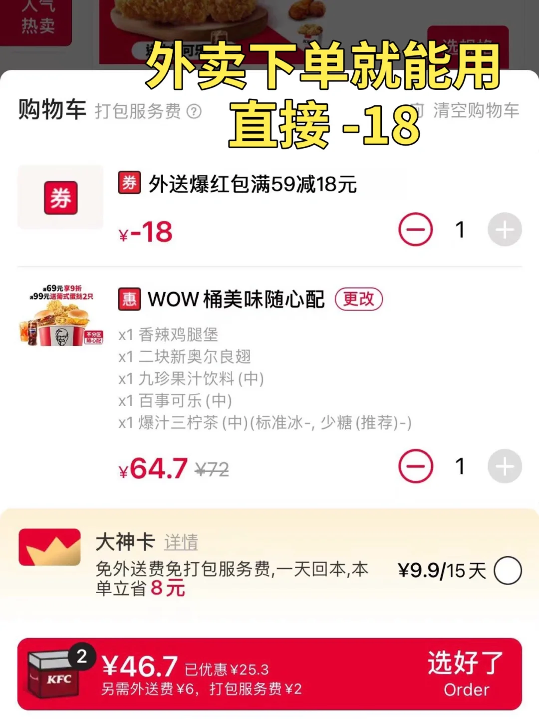 外送立减18r!!都给我冲肯德基爱皮皮!