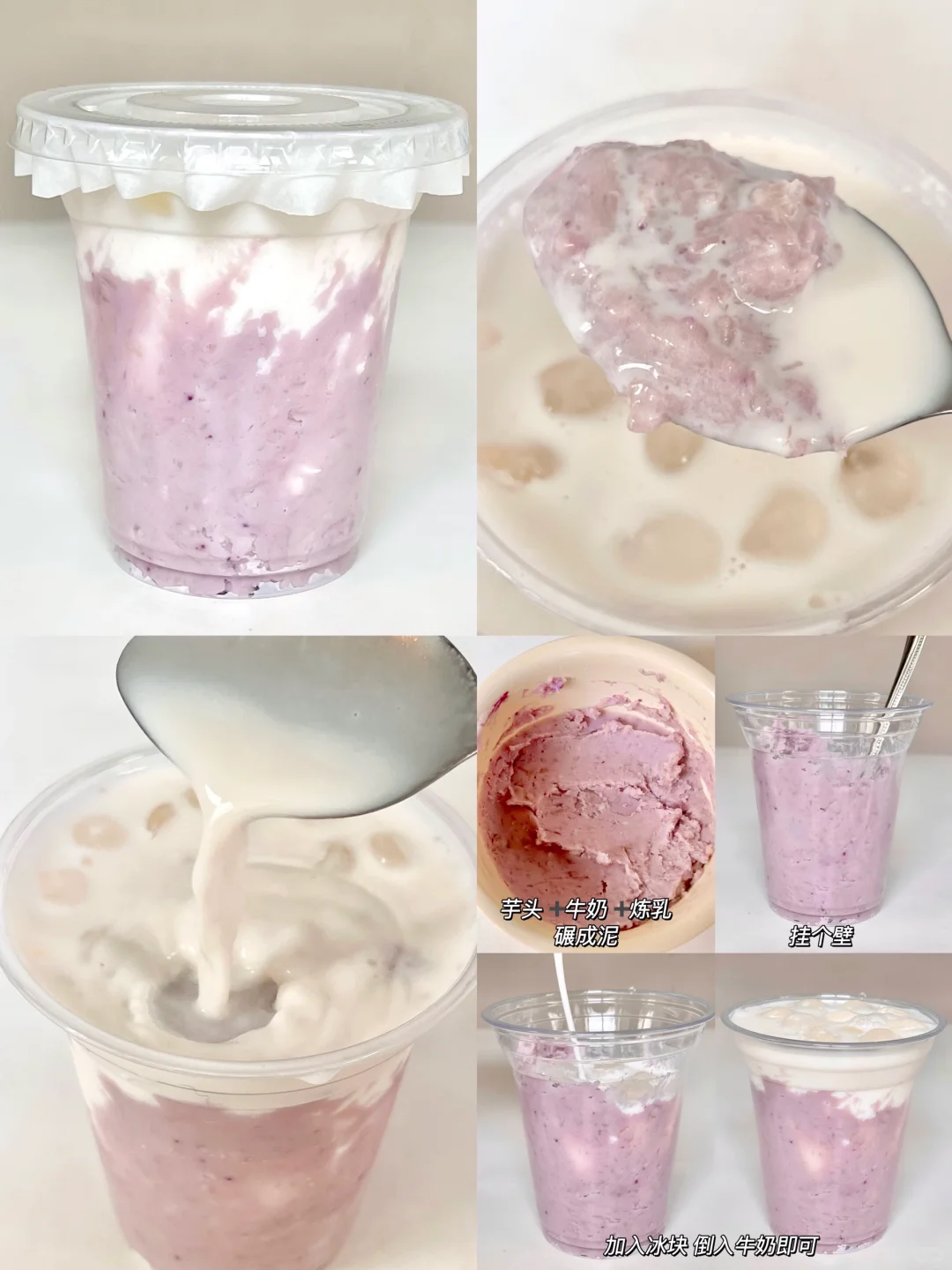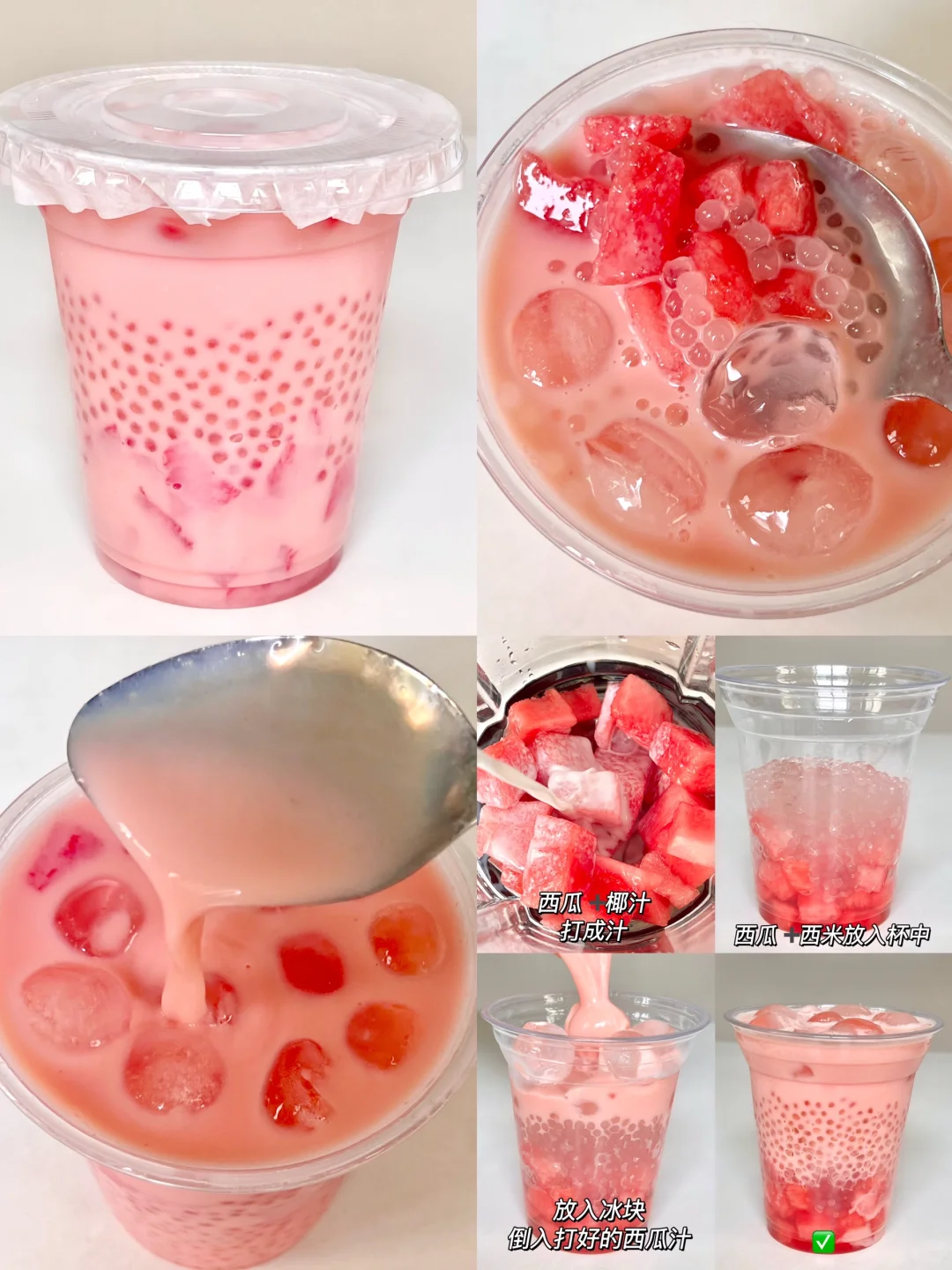 1⃣️芋泥冰奶 2⃣️西瓜椰汁西米露 3⃣️杨枝甘露 4⃣️绿豆沙牛乳 学会了在家做!颜值好高~ 简单好喝!!做法贼简单!
