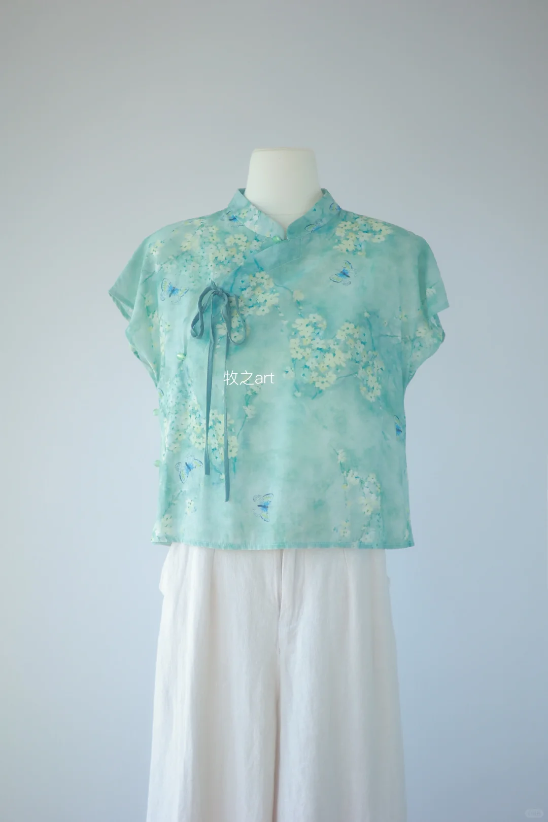 全开襟版型,侧边斜襟是可以解开的,整体版型是改良民国时期的,更日常些 面料吸湿透气,是夏季常用面料 颜色也很特别,是温婉的,白皮、黄皮、黑皮都适合 可以搭配苎麻裤子,日常休闲 也可以搭配半裙,会更仙一些 3️⃣码/现货库存 -