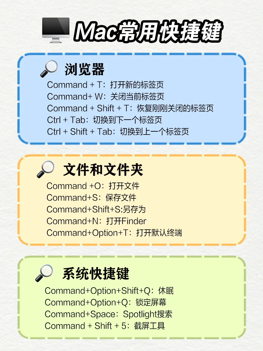 相信很多宝子们在第一次使用Mac电脑时 会遇到跟科仔一样的问题🤨 Mac电脑中的Command键(⌘)Option键(⌥)Control键(⌃) 它们到底是什么❓❗ 其实Command键=Ctrl键,Option键=Alt键 Control键(在某些情况下,但功能上有所区别)≈ Ctrl键 👋 今天科仔还要和大家分享Mac快捷键秘籍 让你的Mac💻使用感飞起来🚀 - 科仔将从下列几个常用操作的角度 来讲解Mac快捷键👨🏫 请👉图2 💡文本编辑快捷键 💡窗口管理 请👉图3 💡浏览器快捷键 💡 文件和文件夹 💡 系统快捷键 - 快去试试这些超级实用的秘籍❗ 让你的成为职场最亮的那颗星✨ -