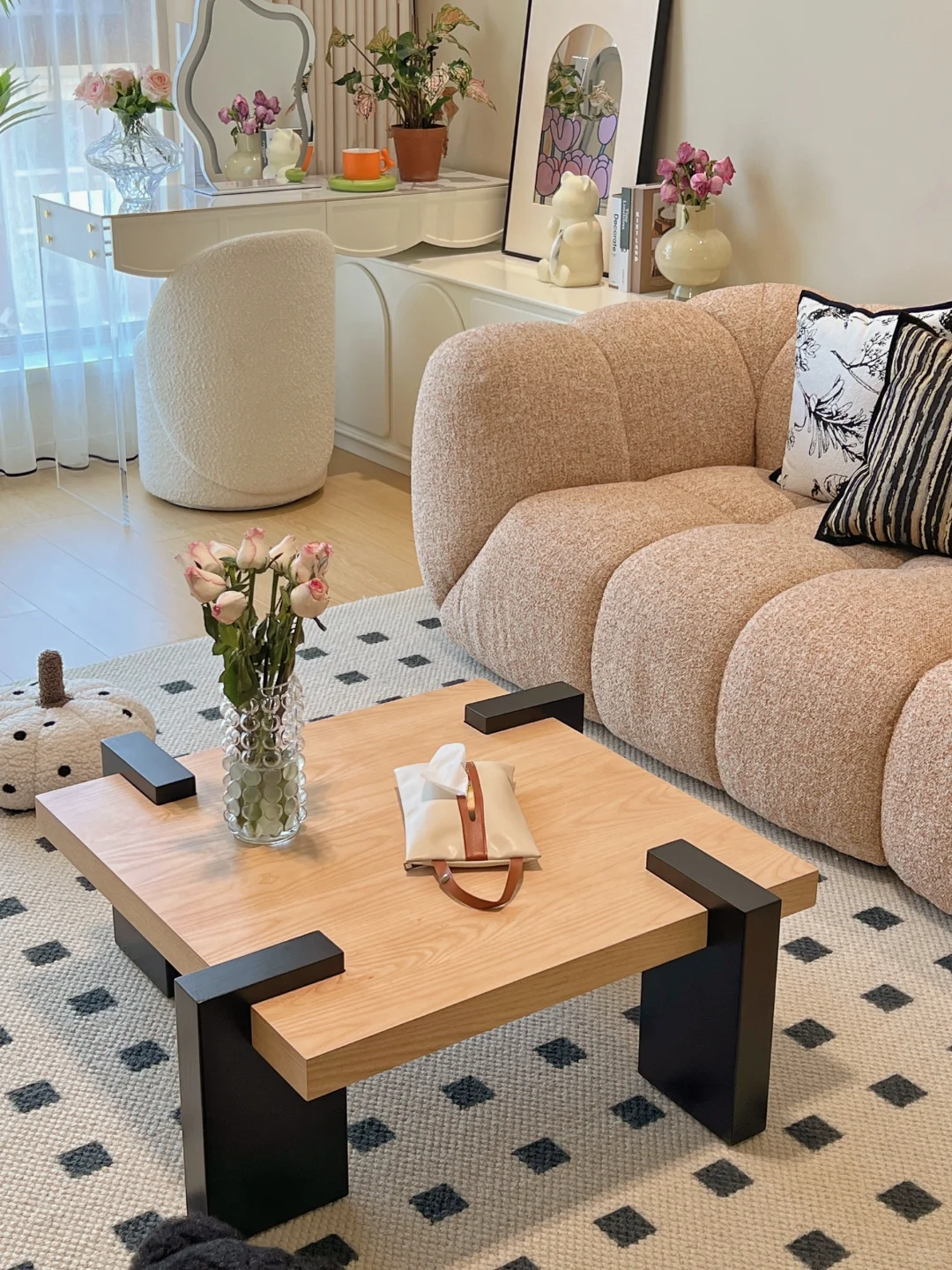 小家不大 套内83平 我家客厅简约风格 通过不同的软装搭配 既可以复古 也可以奶油 · 客厅开间4米 通刷1519香草拿铁乳胶漆 层高一圈边吊 吊顶下吊20cm 地砖上通铺锁扣地板 · 硬装简简单单 后期软装搭配起来也很好看 奶油复古风的沙发 简约大方的实木茶几 玄关处的洞洞板收纳 灯具也是复古奶油风 家居化繁为简 住在里面真的很舒适~