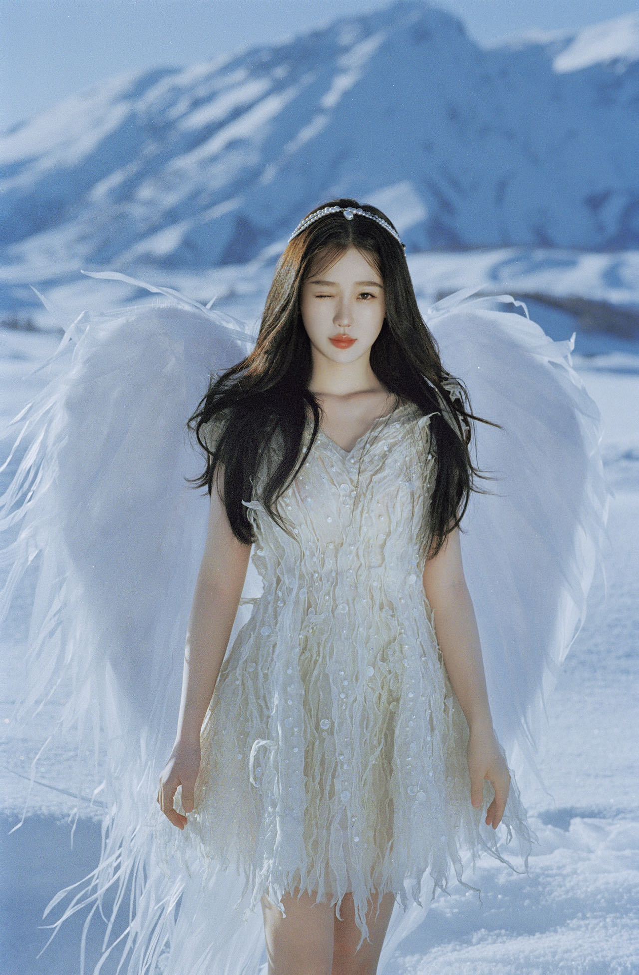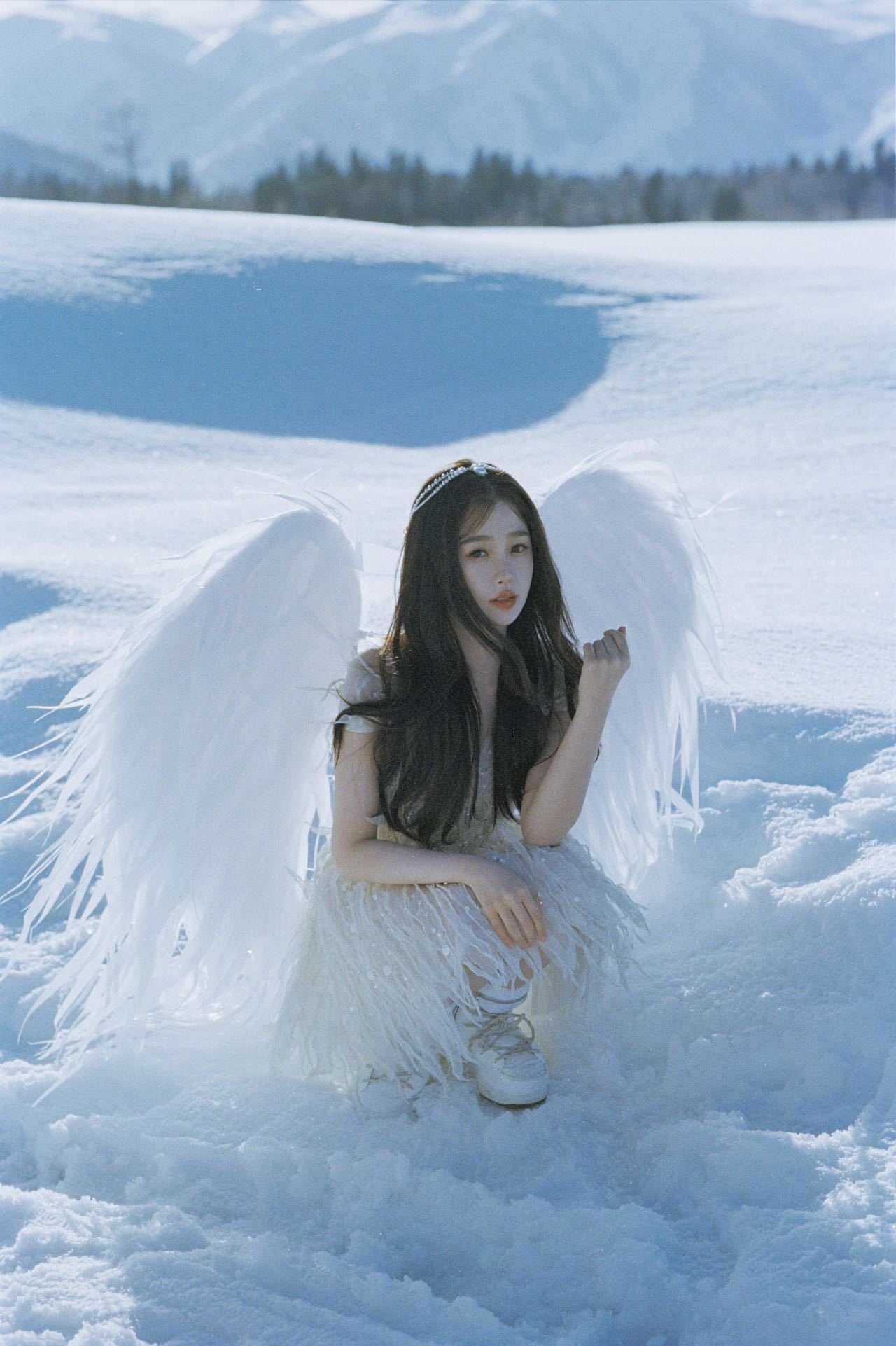 #虞书欣白天使# 妈咪这回真看到天使了!虞书欣今天这组营业照也太美了吧,雪地里纯