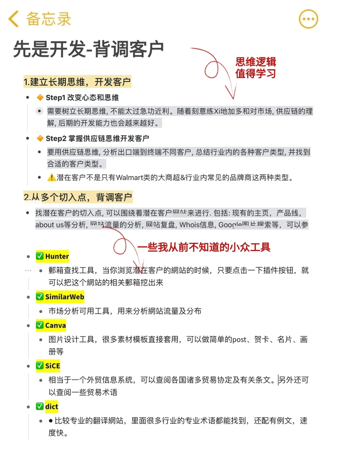 我做外贸第四年的时候,公司来了个新同事,我第1次体会到被降维打击。 她是真的从思维层面去理解客户的行为逻辑,而她本人也是个很乐于接纳新事物的人,所以总能从她那里学到一些新的工具,能帮到我开发背调客户、找客户的邮📮箱、分析市场,甚至翻译、图片设计等。 从那个时候开始,我就开始有意识地重塑自己的外贸思维,第2年就开始自己做soho了。 外贸人,真的不能停滞,永远在路上🏃♀️