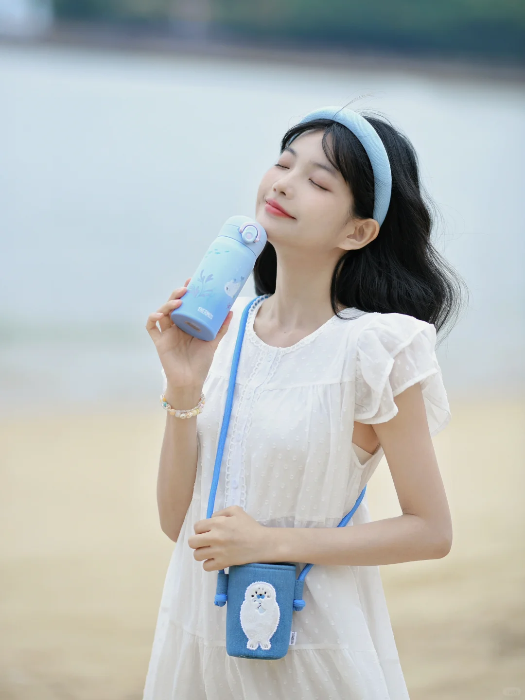 自带杯套 上面的小海豹尊嘟好萌~可以当成小包包背出门嘿嘿🦭