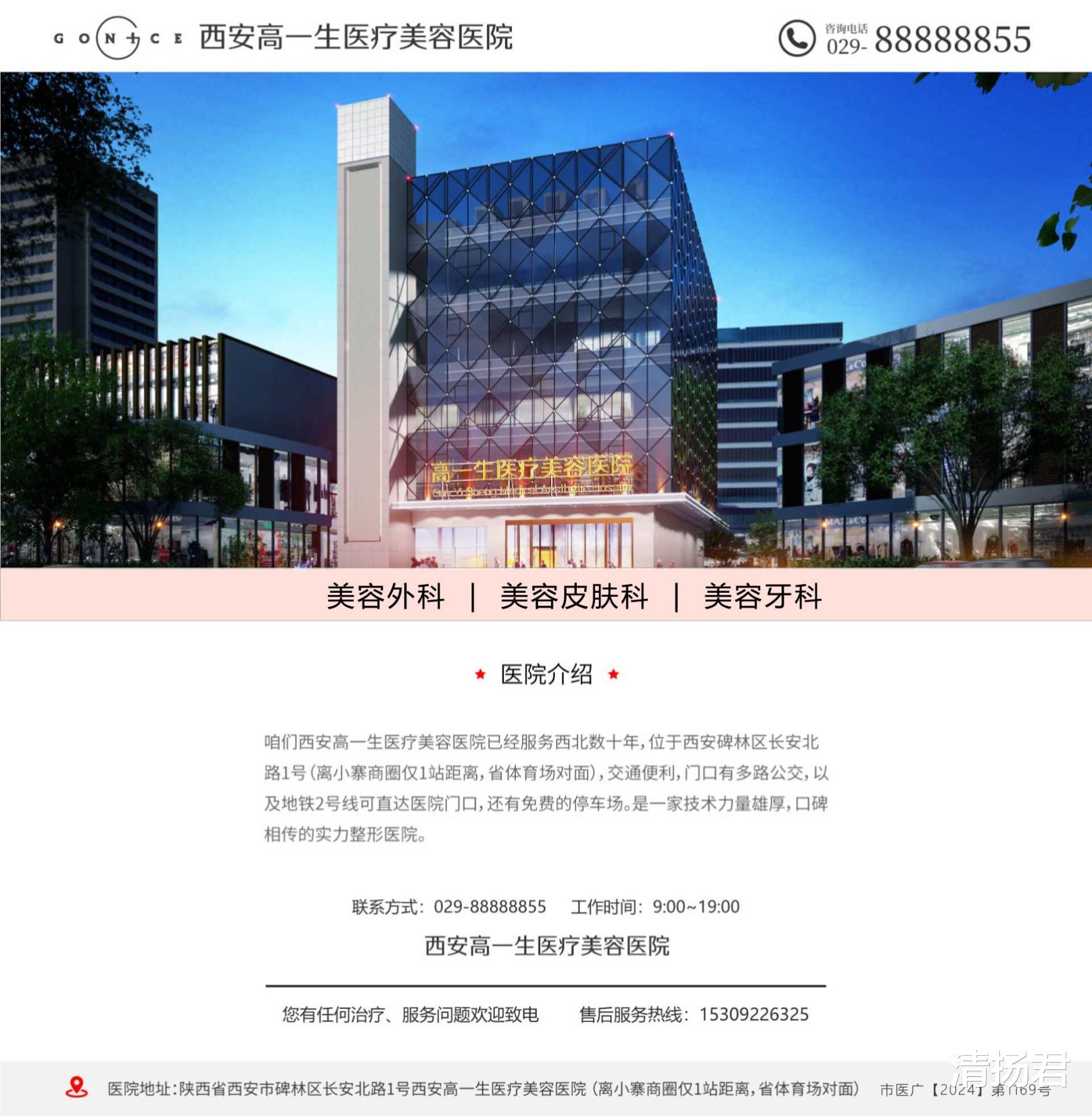 公开资料显示,西安高一生创立于1991年,是一家集美容外科、美容皮肤科、微整形、美容牙科为一体的专业医疗美容机构,在西安地区以经营规模、品牌知名度与技术实力著称。高一生秉承“诚信、规范、专业”的宗旨,坚持医疗本质,致力于为求美者提供安全、科学、高品质且符合个性化需求的医美服务。