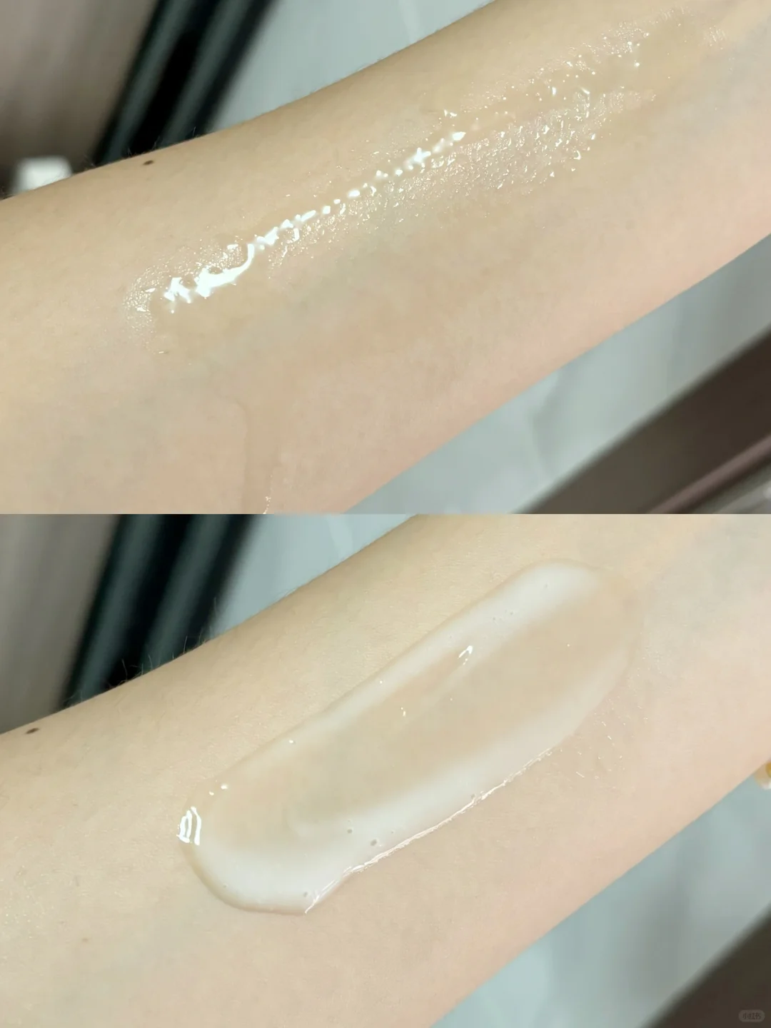 人参水的质地是清爽的凝露质地,人参乳是轻薄的凝乳质地!!!双双搭配完全不黏腻,吸收嘎嘎快!咱就说夏天用真的油皮也不用担心黏糊糊的!!!