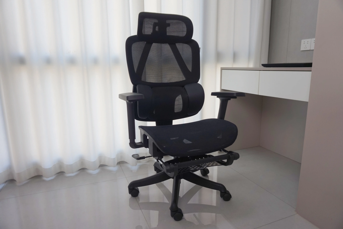 舒适度:坐感稳重扎实,网布透气有弹性,久坐不会塌陷或闷热。虽然不主打放松和躺平,但办公连续工作时舒适感很高,能保持脊柱自然曲线,久坐不累。