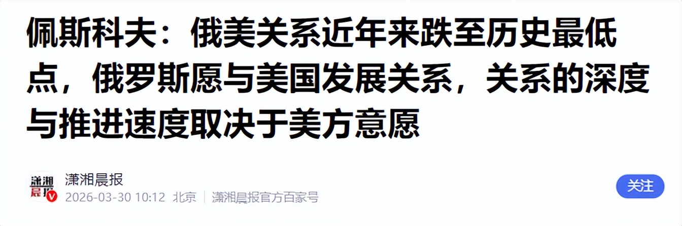 俄总统新闻秘书佩斯科夫在回应此事时明确表示,近些年来美俄关系跌至历史最低,当前恢复双边关系的谨慎尝试至关重要,但这并不意味着俄罗斯会改变自身的外交立场,更不会参与任何针对第三方的阵营对抗。
