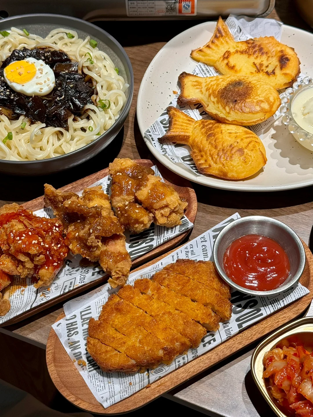 好吃不贵的韩料小食堂!!炸酱面就是韩ju里黏糊糊的那种!好好吃[哭惹R]还有鲷鱼烧冰淇淋…泡菜豆腐锅…炸鸡!都很🉑!