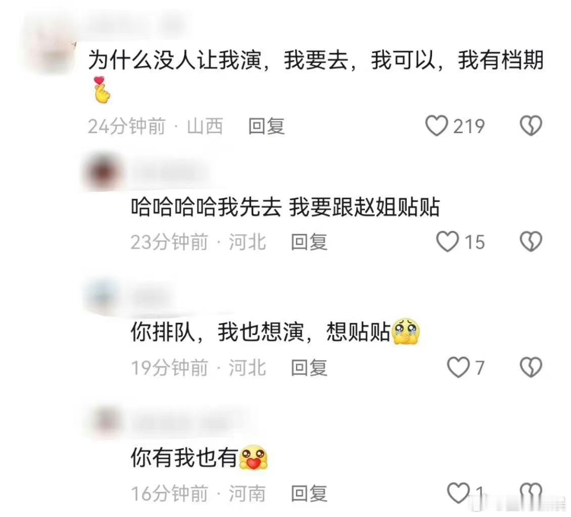 #辛芷蕾演累了让我上去演# 我要去,我可以,我也有档期,想和赵丽颖贴贴!