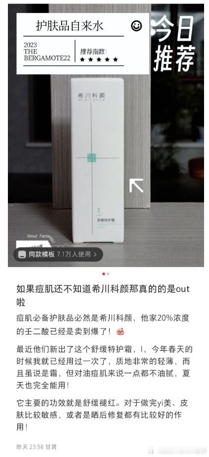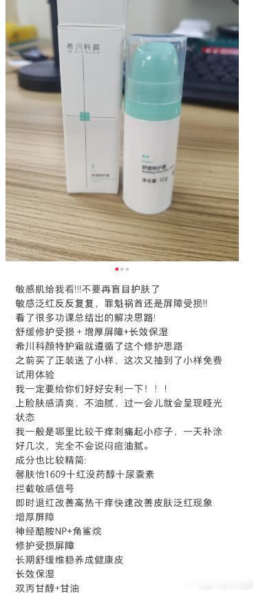 有这些困扰的小伙伴,建议准备一只特护霜。比如在使用壬二酸等祛痘产品前,可以先上一层舒缓特护霜,为皮肤兜个底,降低刺激和痒感,也帮助建立耐受;在皮肤有红痒起小包的时候,也可以使用特护霜,帮助皮肤快速褪红,缓解红、热、痛。