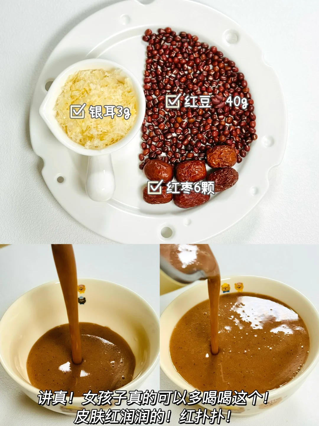 1⃣银耳3g➕红豆🫘40g➕6颗红枣