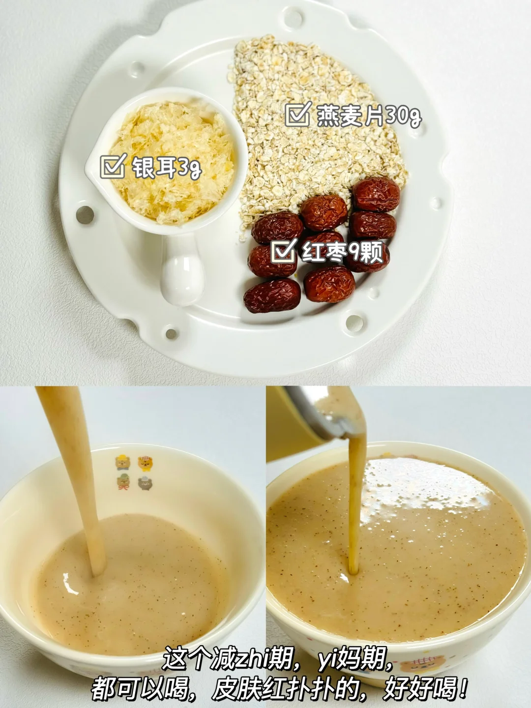 4⃣银耳3g➕燕麦片30g➕红枣9颗