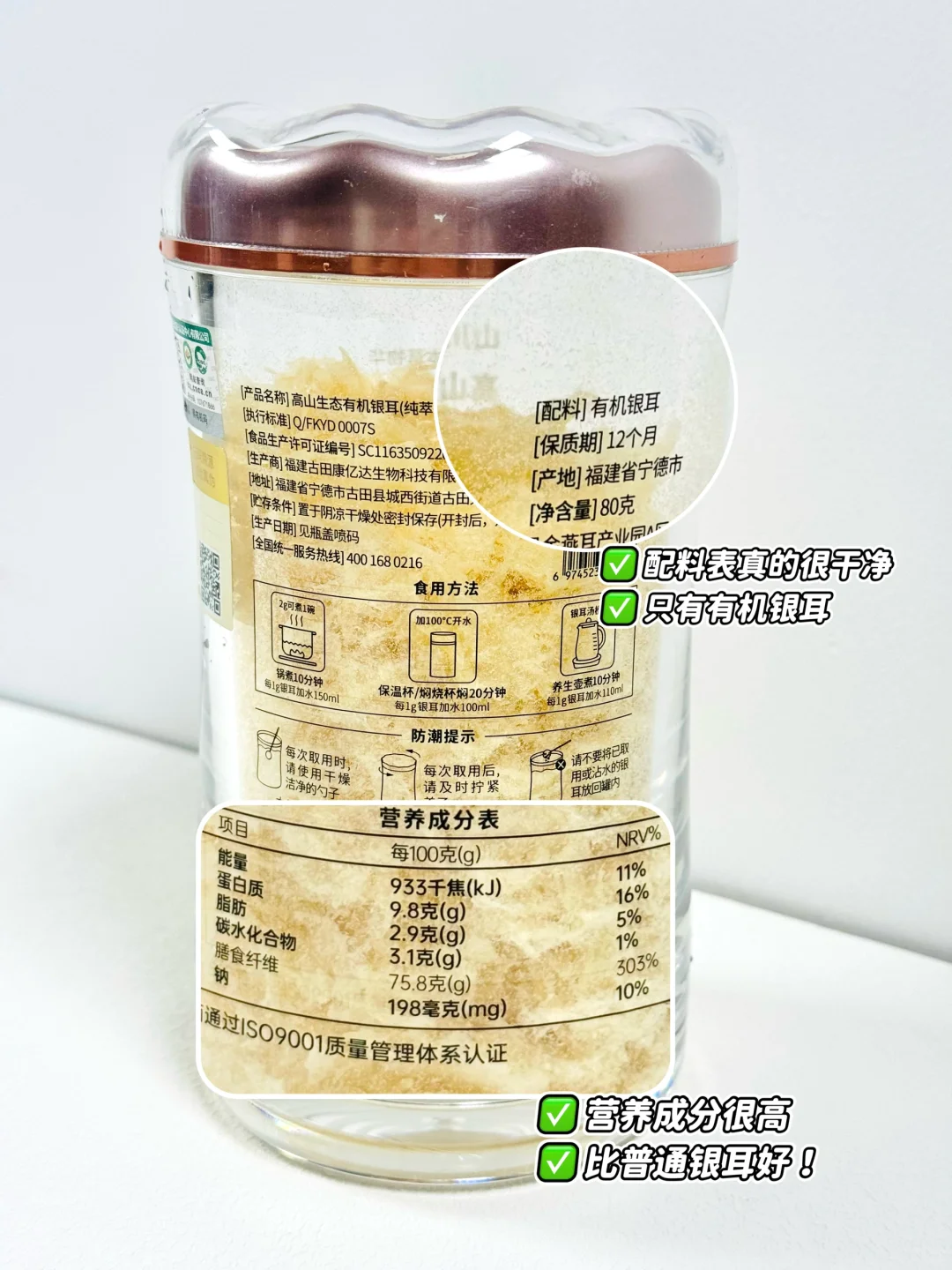 🌈给大家分享一下我吃的这个银耳,它家是高山有机银耳,有自己全产业链源头把控品质✅而且经过brc全球食品安全认证!养生食养吃真的很放心 还有一点特别牛,它很方便,免洗免泡,平时焖烧壶直接焖20分钟或者直接加点红枣啥的煮个10来分钟就可以喝了,出来的银耳羹,又稠又糯,跟三小时鲜炖出来的没啥区别!