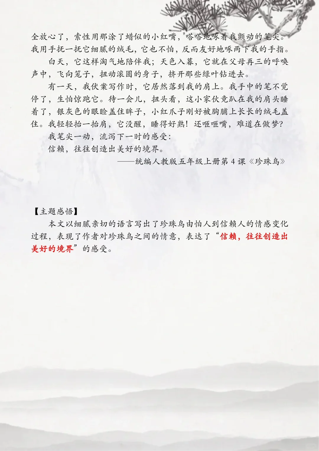 📖语文教材中有三篇课文是冯骥才先生所著 分别为: 📚四年级下册第25课《挑山工》 📚五年级上册第4课《珍珠鸟》 📚五年级下册第14课《刷子李》 🍀每一课内容都让人印象深刻。 🍀后面会陆续推出语文书里的《朱自清》《鲁迅》等。