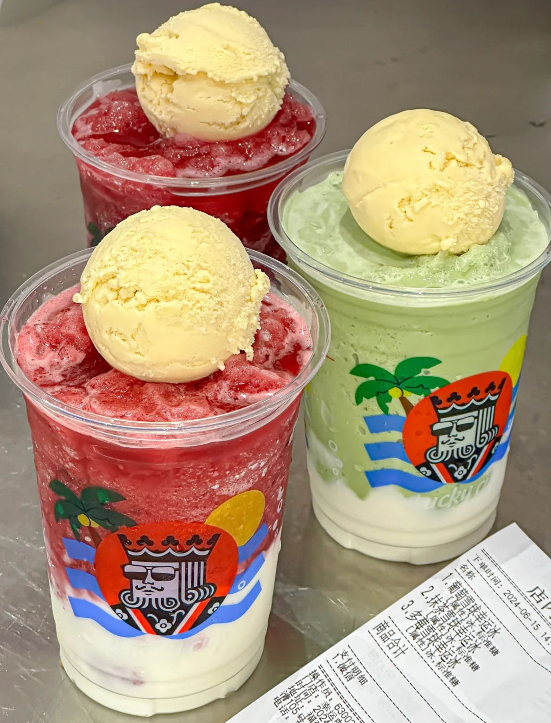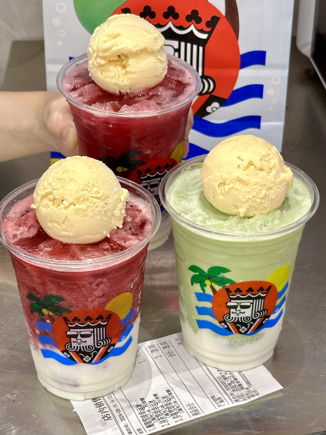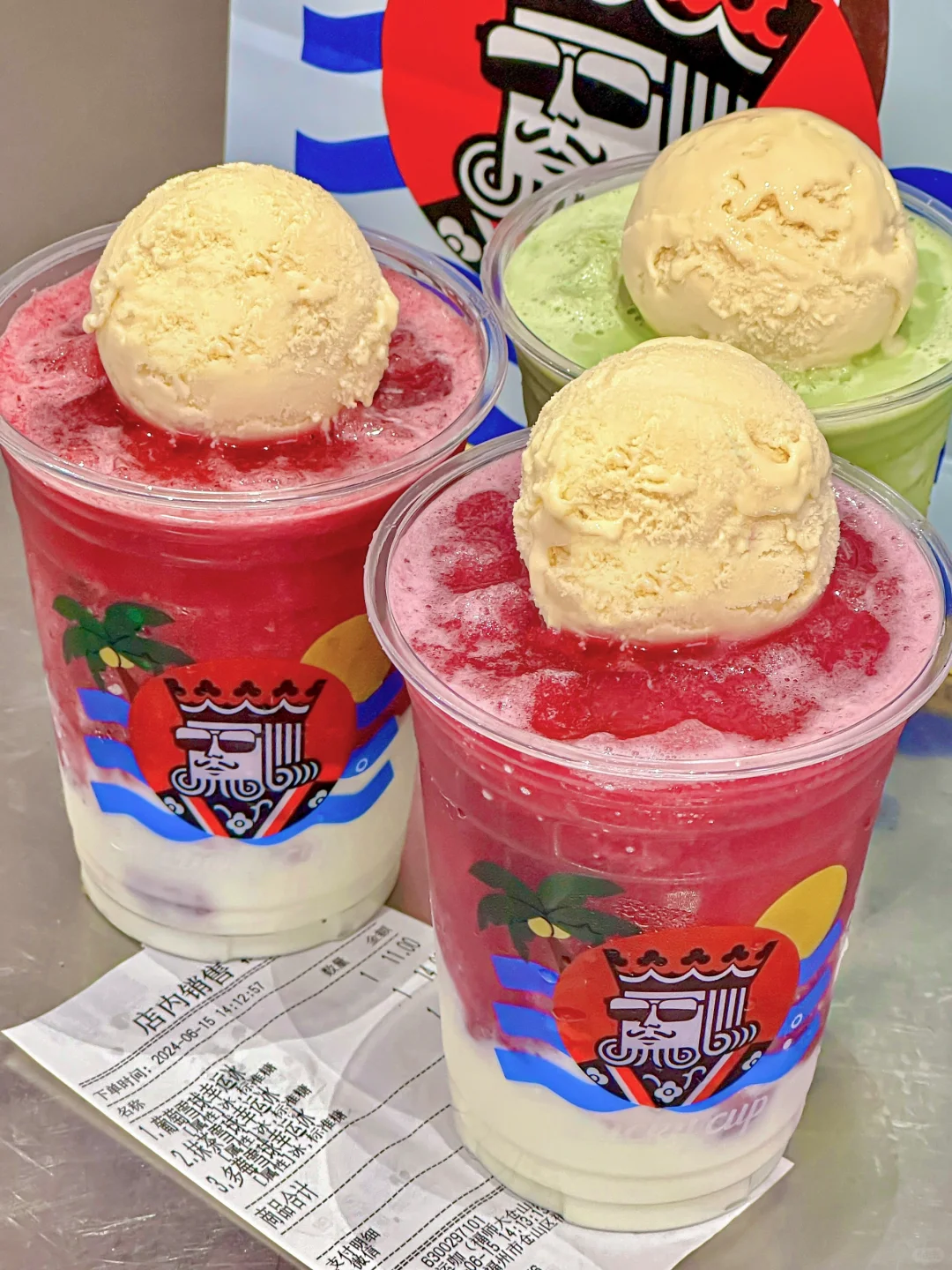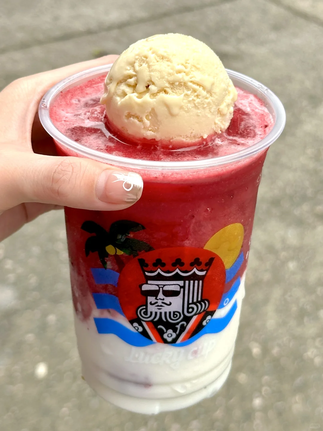 有一整颗冰淇淋雪球!!不加一滴水!奶味超浓!!融合酸酸甜甜的莓果味冰沙、浓郁的酸奶和香醇茉莉茶汤!!口感超丰富!