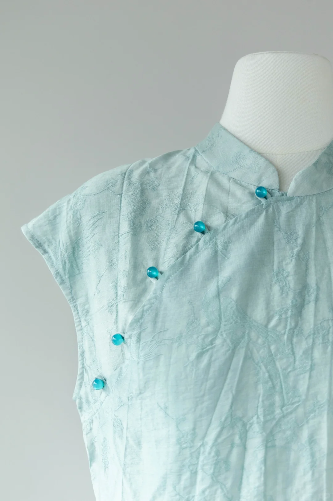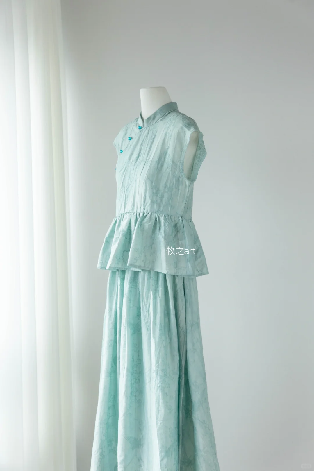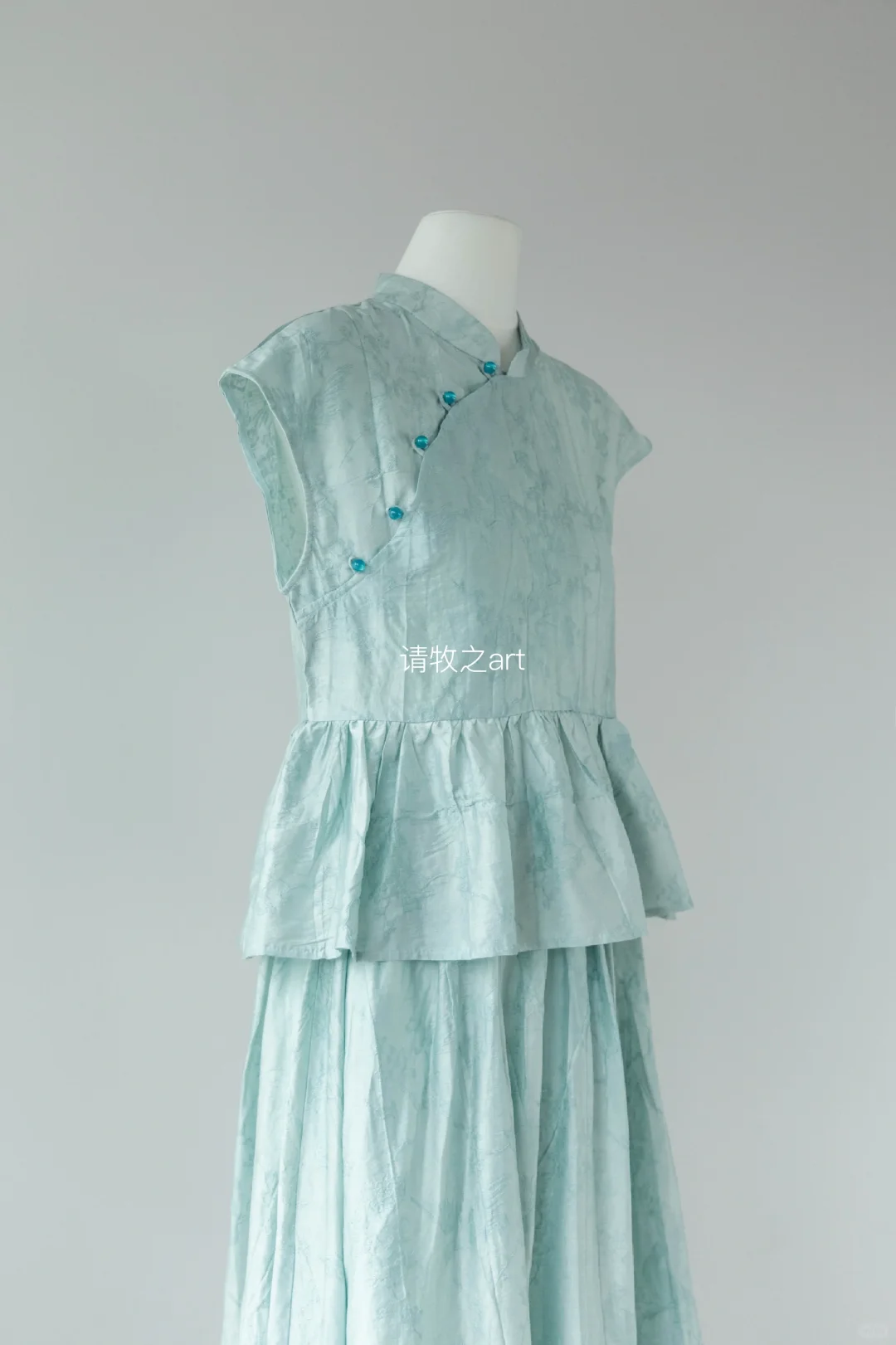 丝麻面料,提花工艺 面料真的好美 面料做的不均匀的炒色工艺,自然晕染的感觉 肌理感做邹,日常好打理 很淡的很特别的蓝色,清凉高级,不自觉安静下来 -