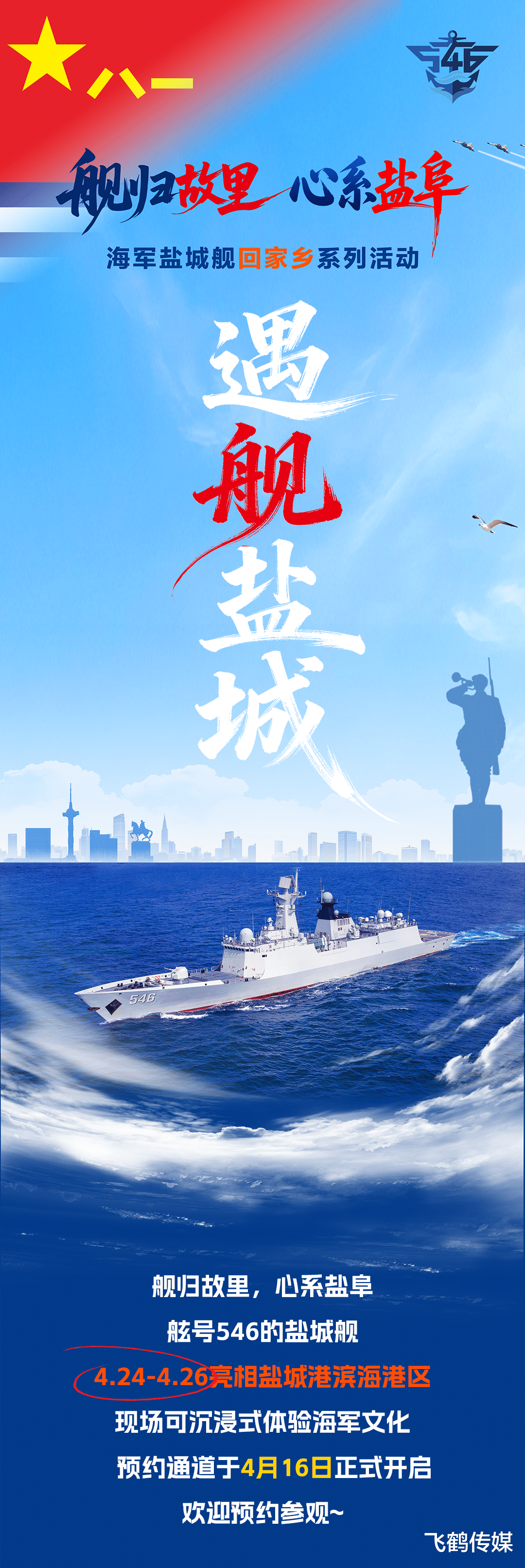 海军盐城舰是我国自行设计建造的054A型导弹护卫舰,舰长130余米,宽10余米,高30余米,满载排水量4000余吨,于2011年4月下水,2012年6月入列服役,舷号546。