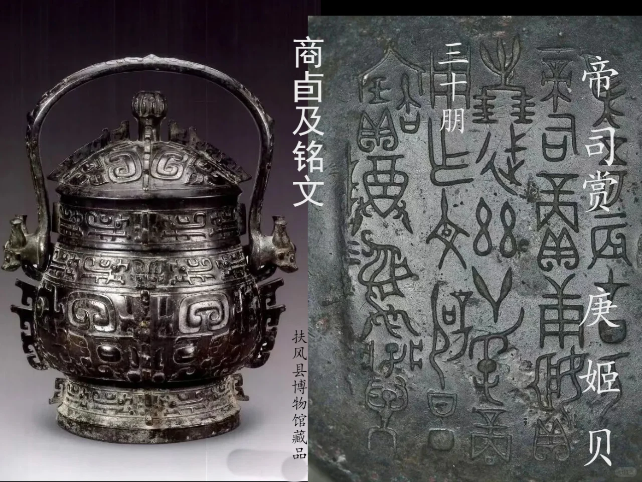 一、历史学: 图二、《史记 殷本纪》:少子辛,辛母正后(司),辛为嗣。帝乙崩,子辛立是为帝,天下谓之纣。 信息:当时有正司,那就有比正司低的“副”司,后世称商纣王,当时称之为帝乙(帝,上帝的意思),说明商晚期是神权社会,帝乙(商纣王称帝,因其母为正司)。文献记载流传至今会有多种问题(之前说过文献隶定的事情,其他以后说)但可以先做大致参考。 二、青铜器学+古文字学: 1、图三、商代晚期青铜器商卣及铭文:帝司赏庚姬贝三十朋。 信息:商代晚期帝司是有的且权力很大。 2、图四、与司母戊大方鼎同墓(妇好墓)出土的还有其他司:司“兔”母尊、斝铭文。 信息:印证《史记》记载商代的司有正司(肯定就有副司)和“副”。 三、青铜器学+历史学+古文字学 1、图五、《史记 殷本纪》:于是周武王为天子,其后世贬帝号,号为王。而封殷后为诸侯,属周。 2、图六、西周早期司母康方鼎及铭文:司母*康,陕西扶风县博物馆藏品。 信息:“殷后”是泛指,可能包含商司,西周早期司母康方鼎,说明西周早期还有司母。 四、考古学 1、图七、妇好墓发现地。一、在当时的建筑生活区,二、有墓上享堂类建筑、三、墓葬规格尺寸小(相对商王墓)。 2、图八、安阳商晚期商王墓群,一、商王墓葬规格都是“亜”字形墓,二、有专门的墓葬区,三、商王墓都是一个人没有夫人墓 信息:妇好墓显然从墓葬区域、葬俗、合葬规制来说,都与商王不是一个体系的。 3、图九、西周晋侯墓葬群,很显然晋侯墓葬制度都是夫妻合葬(异穴合葬)制度,晋侯属周,必定是按照周王墓葬制度(西周鲁侯墓群一样都是夫妻合葬(异穴合葬)制度)。 信息:根据墓葬制度,很明显商王是独葬,商王的夫人权力并不大。西周是有”后“制的,即太后制,其子成为王(侯)其母才能与亡夫(王)合葬,其子祭两祖:父氏皇祖,母氏高祖(以后详说)。太后制是依附于王制的,显然商代不是。 五、青铜器学 目前综合来看,方鼎代表的是司器,商代方鼎数量多、体型大且制作工艺精美,而到西周圆鼎明显顶替了方鼎的地位。 综上所述:司母戊大方鼎,用司来解释以上论据是通的,而用“后”(太后制)来解释是不通的。(商代是神权制度,才会有人殉制度,人殉制度不是只殉战俘,更多的殉葬是商王周边的人臣。 写到这里大致可以说清了吧,没检查就这样了。欢迎大家指导意见。