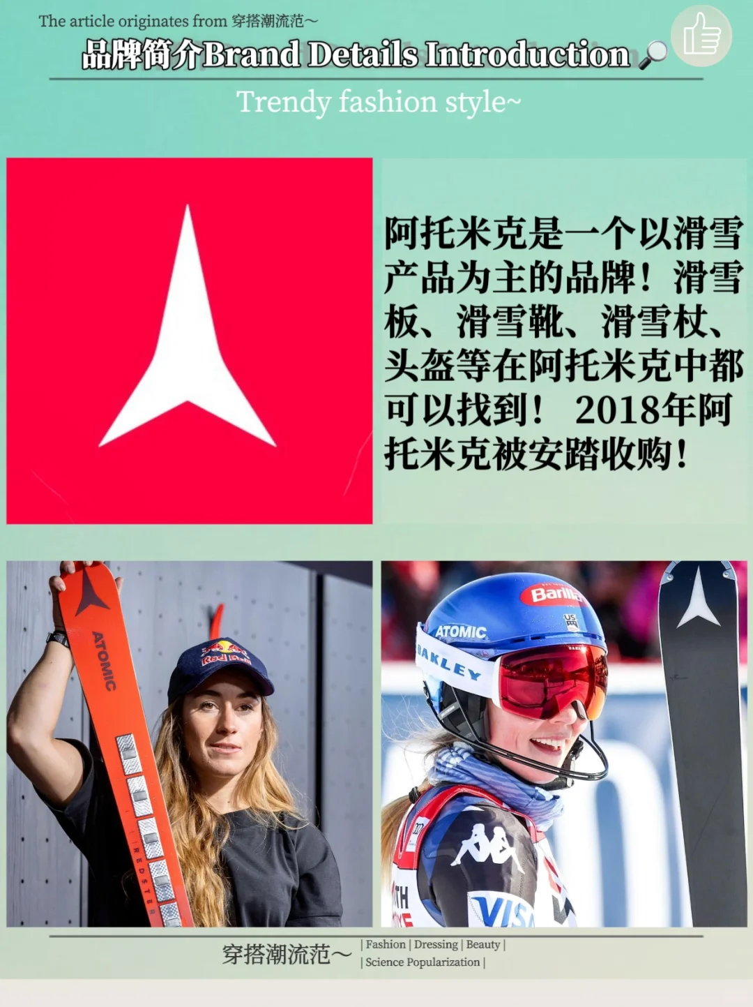 阿托米克是一个以滑雪产品为主的品牌!滑雪板、滑雪靴、滑雪杖、头盔等在阿托米克中都可以找到! 2018年阿托米克被安踏收购!