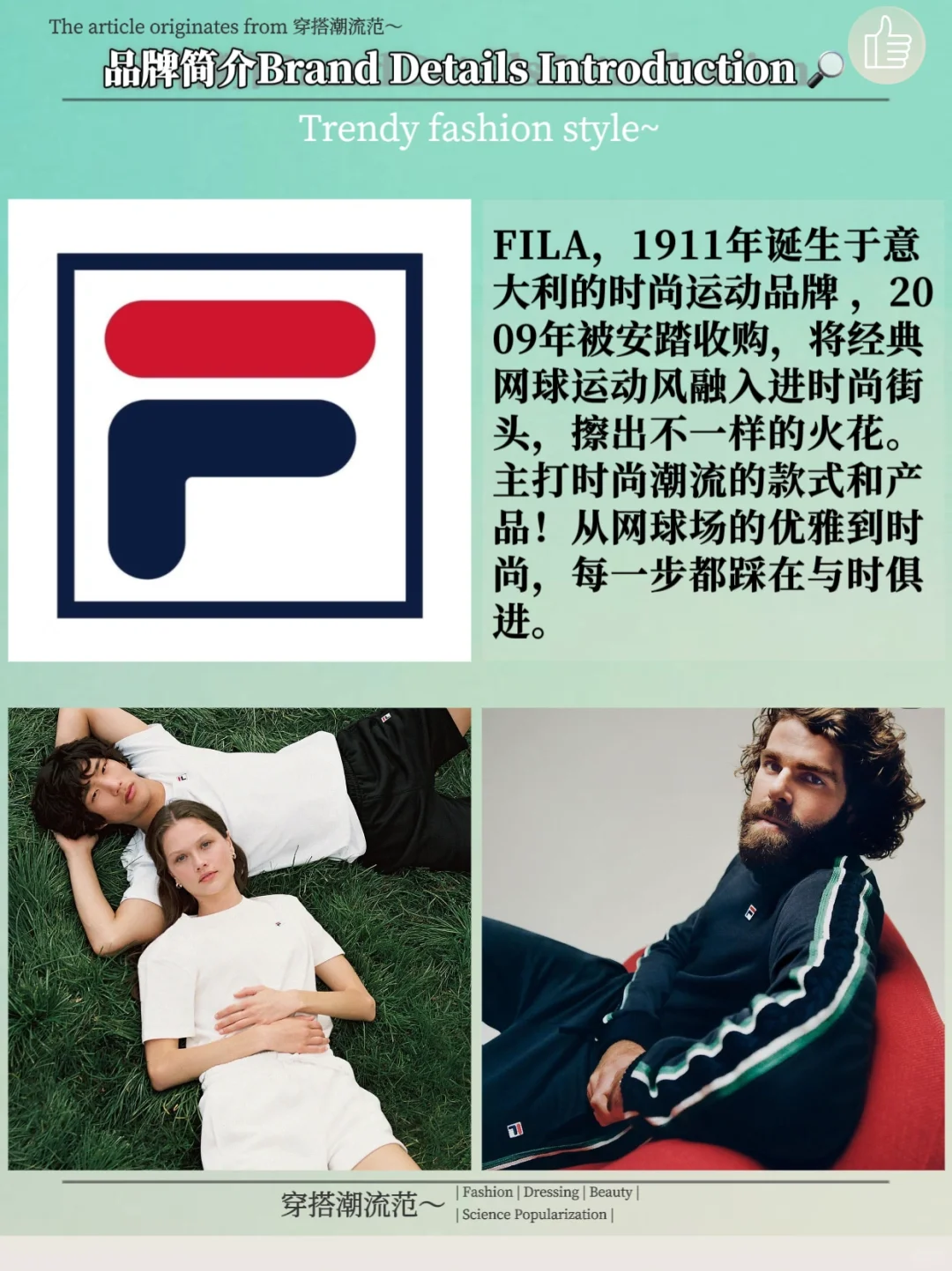 FILA,1911年诞生于意大利的时尚运动品牌 ,2009年被安踏收购,将经典网球运动风融入进时尚街头,擦出不一样的火花。主打时尚潮流的款式和产品!从网球场的优雅到时尚,每一步都踩在与时俱进。