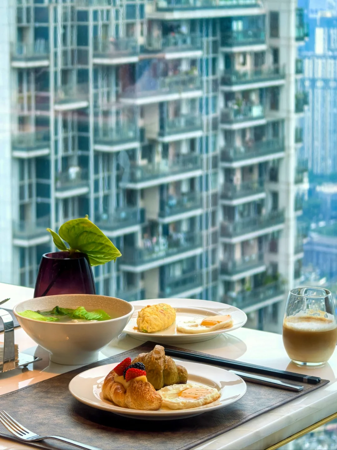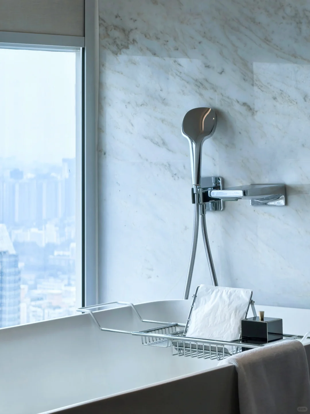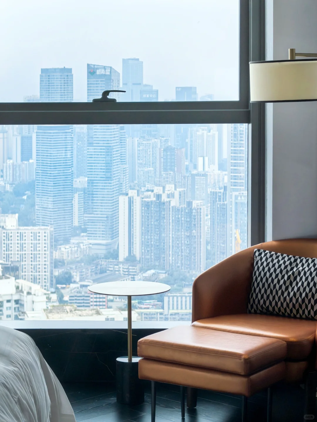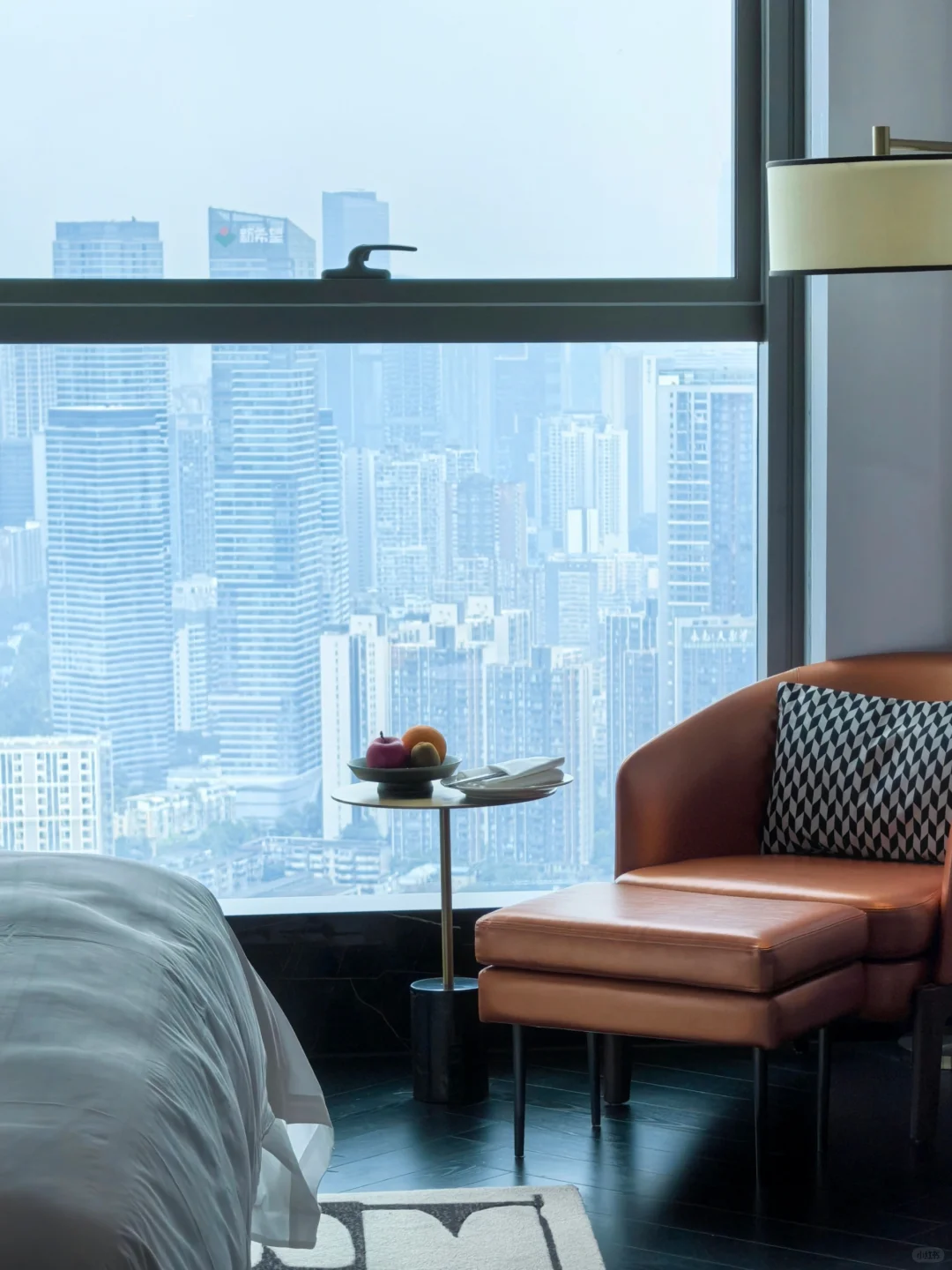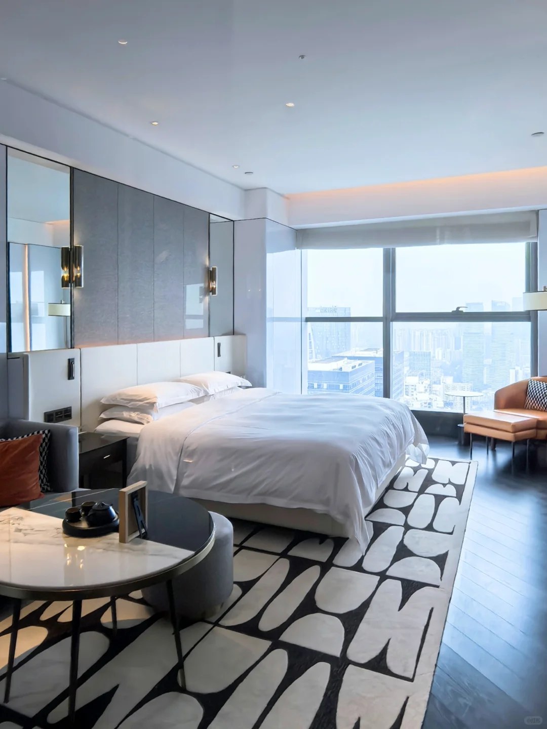 房间整个是黑白主色调,整体奢华感营造很容易联想到香港的尼依格罗美利酒店。浴缸在窗边,同时在淋浴的旁边配了一个主洗手间,但是整个房型非常大气一点也不局促。我的房间在49楼,视野相当开阔,可以正看西南第一高楼蜀峰(可惜最近没啥进度),另外有些房间还有餐厅可以俯瞰太古里。