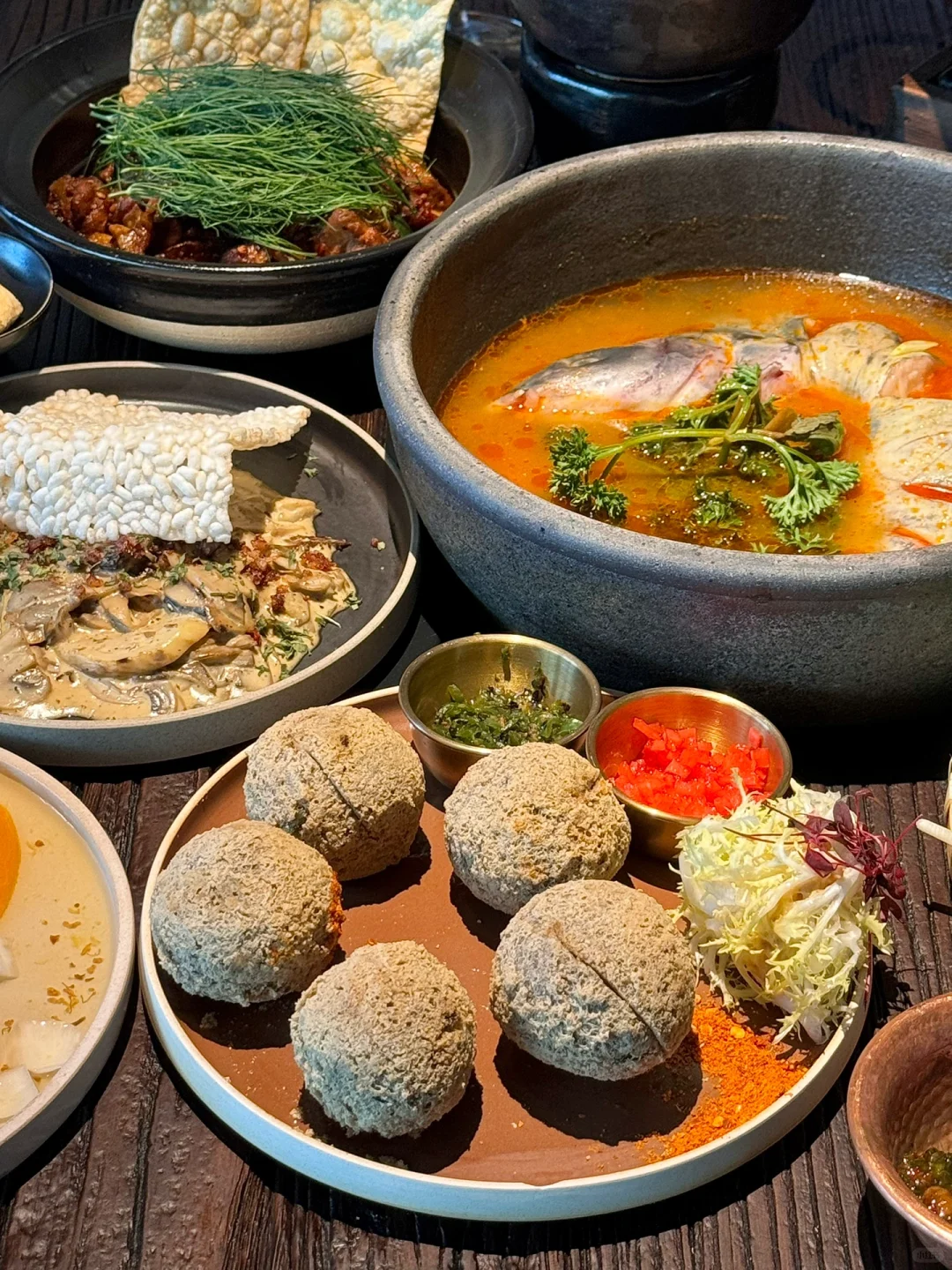 是那种酸辣口的云贵创意菜!!全是没吃过的菜[哭惹R]铜锅油焖鸡ju好吃😭土豆都化成泥了!配上饵块香晕!!还有冰淇淋包谷粑…酸汤鱼…都🉑!