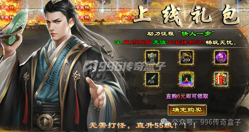 开区会有等待时间,这个时间段领取免费福利后,就能去试着打一下周围的麒麟怪,随机爆出好东西。等待时间过后就能直接进入盟重土城。这里建议开启6元快人一步礼包和68元十梦特权,这样才能使用在等待区获得的三个礼包,开出巨额回馈值。而且快人一步礼包可以直升55级,直下二大陆!要不然升级下大陆还是很慢的,这个很有必要!开通特权可以直接获得飞剑,刷怪非常快!