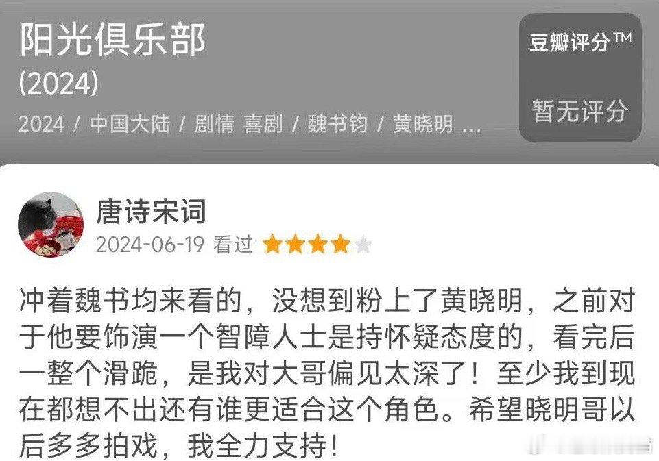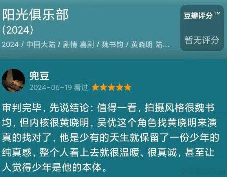 黄晓明真的从来没有让我们失望过呀,这次的新电影《阳光俱乐部》真的太好看了吧,这个题材真的很新颖呀!真的迫不及待想看了呀!