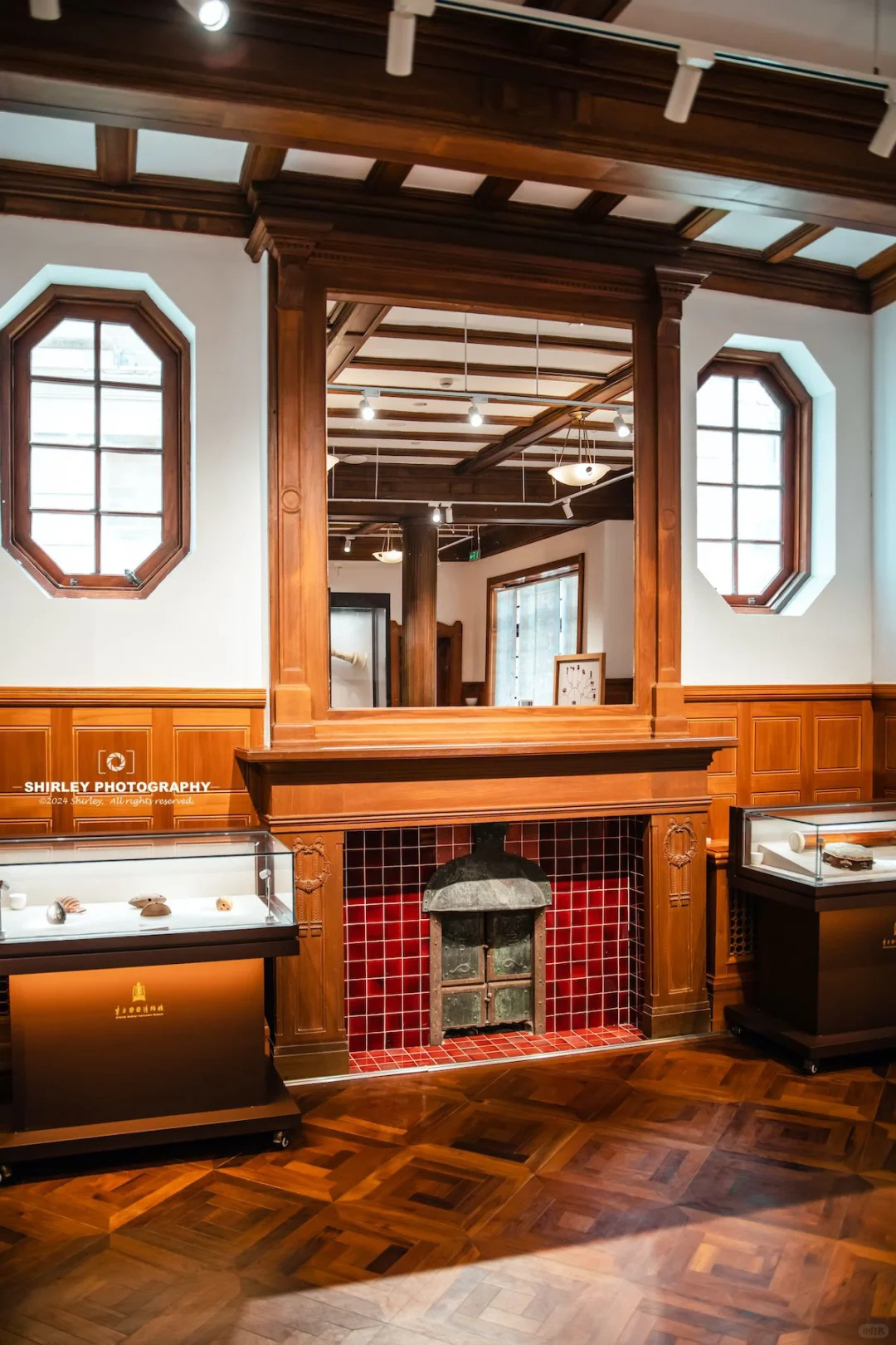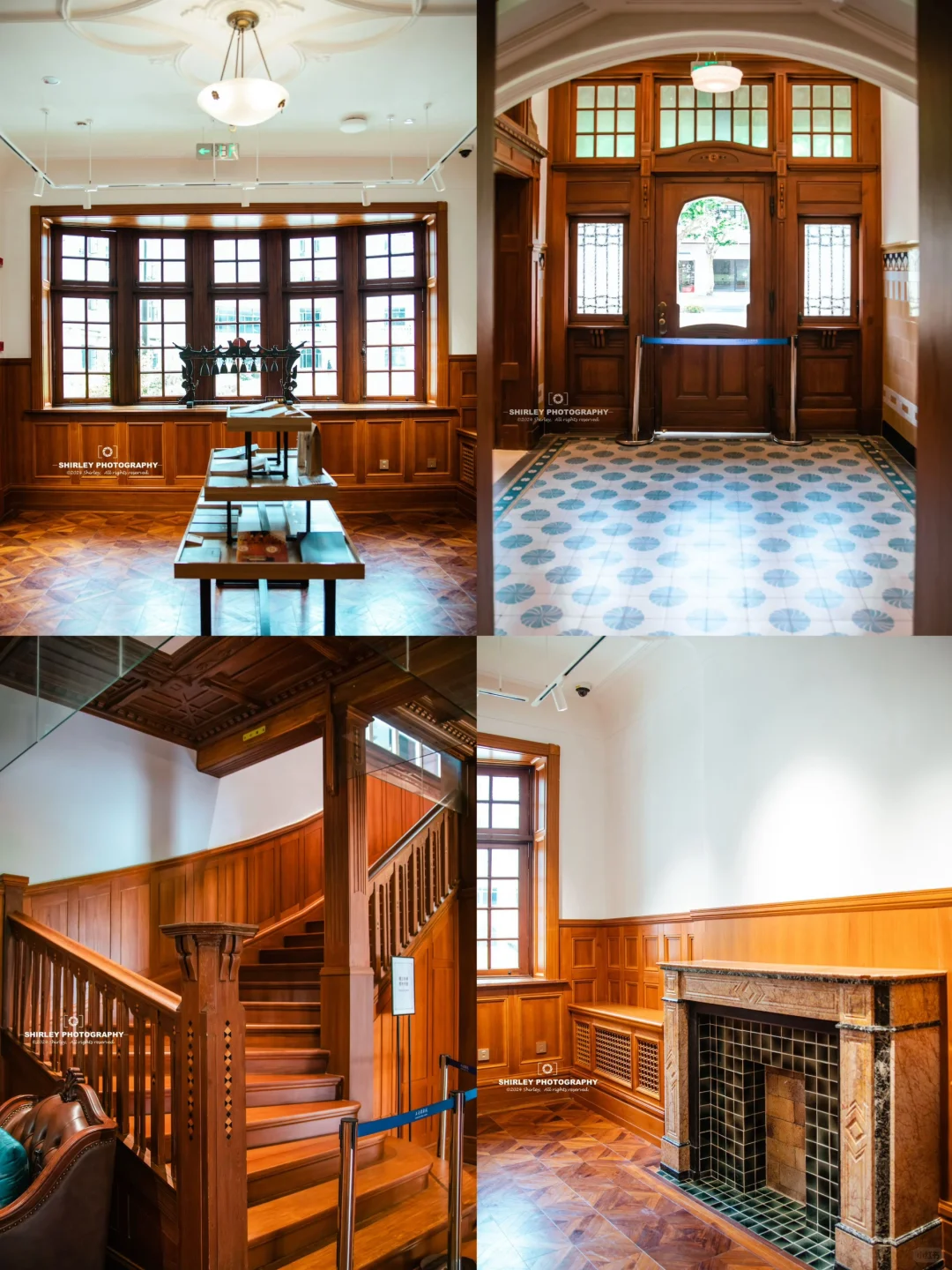 建于1936年,是一栋典型的英式假三层花园住宅,外墙为醒目的砖红色。屋顶形式丰富,局部的立面非常简洁。现在内部有丝路乐器展,目前公布的展期到2025.3.28,布展时结合了老建筑室内的空间结构。