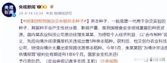 4月14日,央视新闻披露了一起震惊全国的案件:我国杂交水稻之父袁隆平院士毕生心血的结晶——珍贵的亲本种子,竟被一名叫朱某的科研人员窃取并走私给境外势力。这则消息如同一记重锤,不仅砸向了宁静的科技界湖面,更在全国范围内激起了轩然大波。