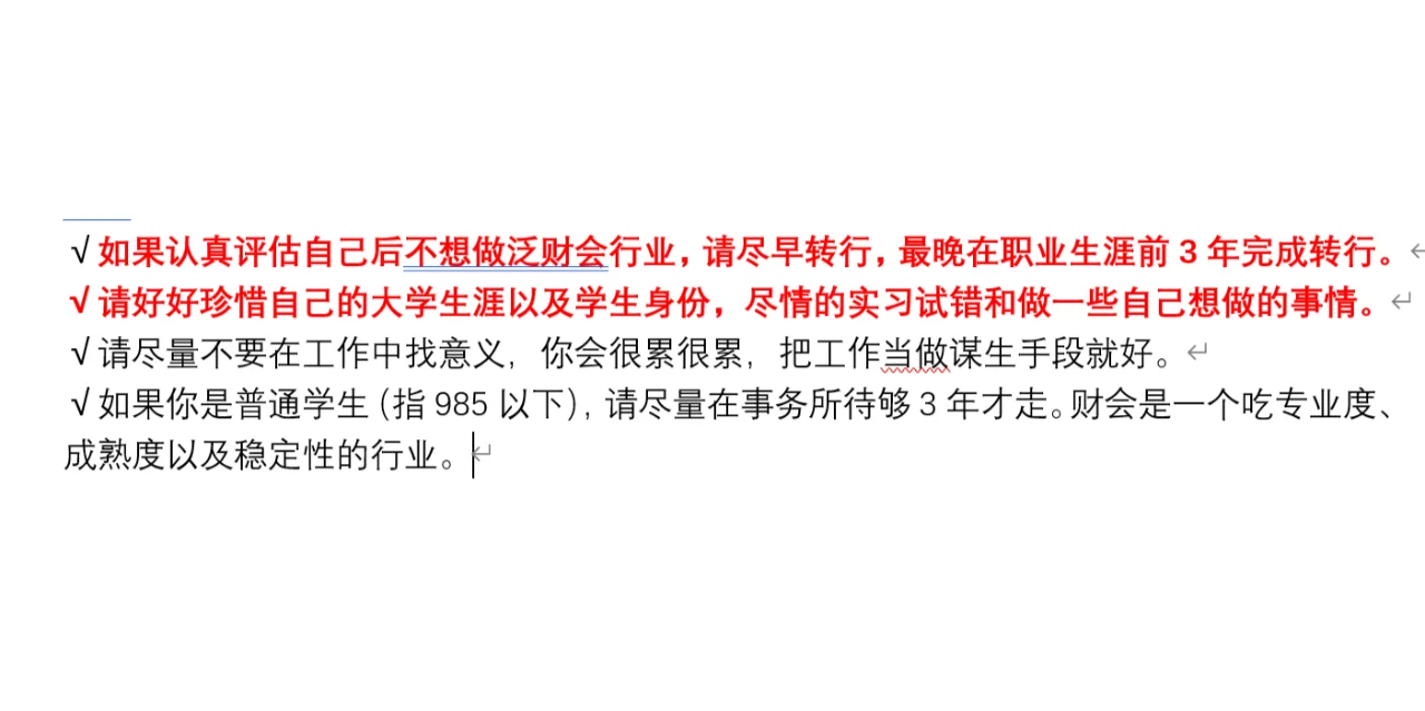 √如果你是普通学生(指985以下),请尽量在事务所待够3年才走。财会是一个吃专业度、成熟度以及稳定性的行业。