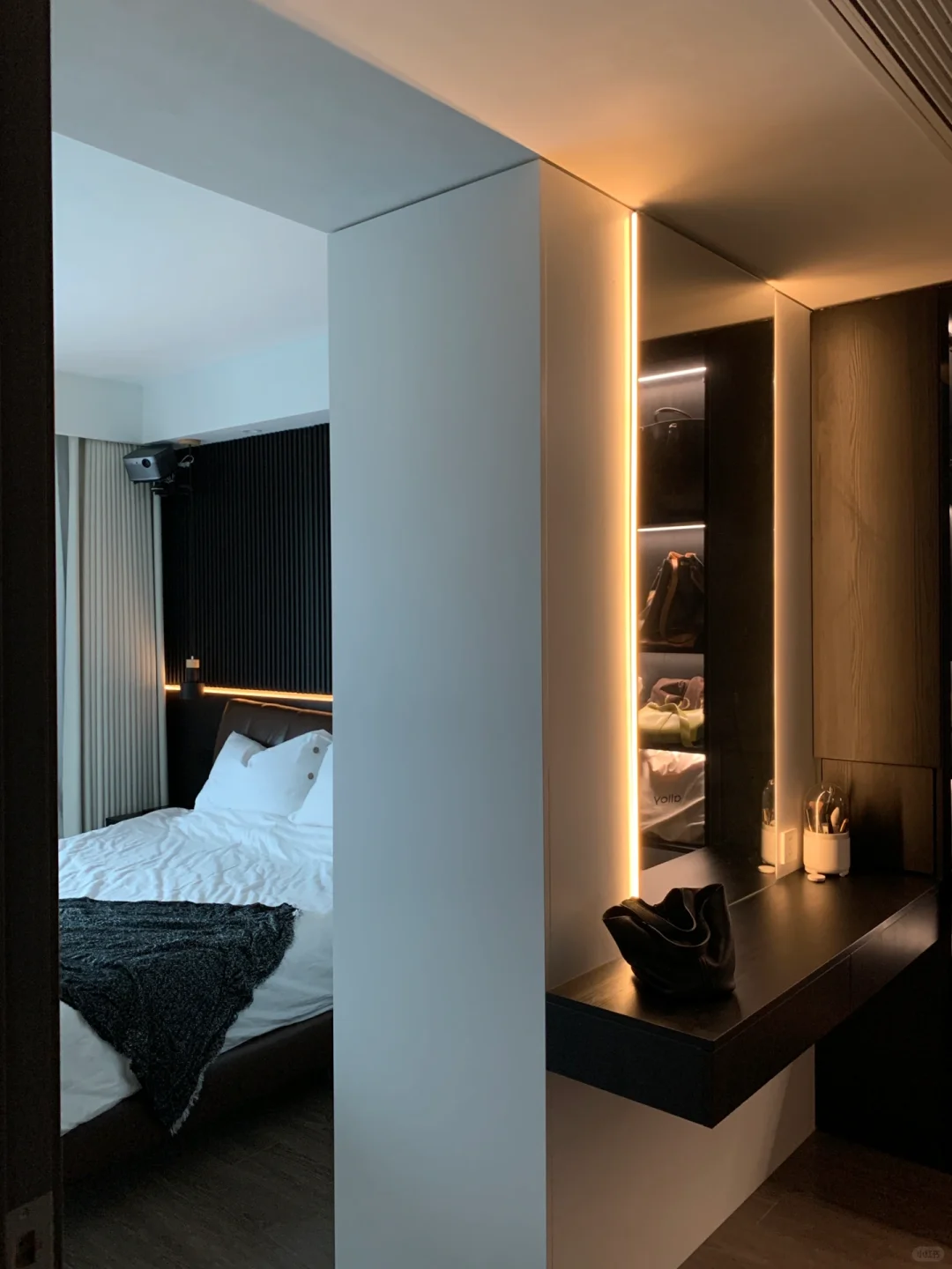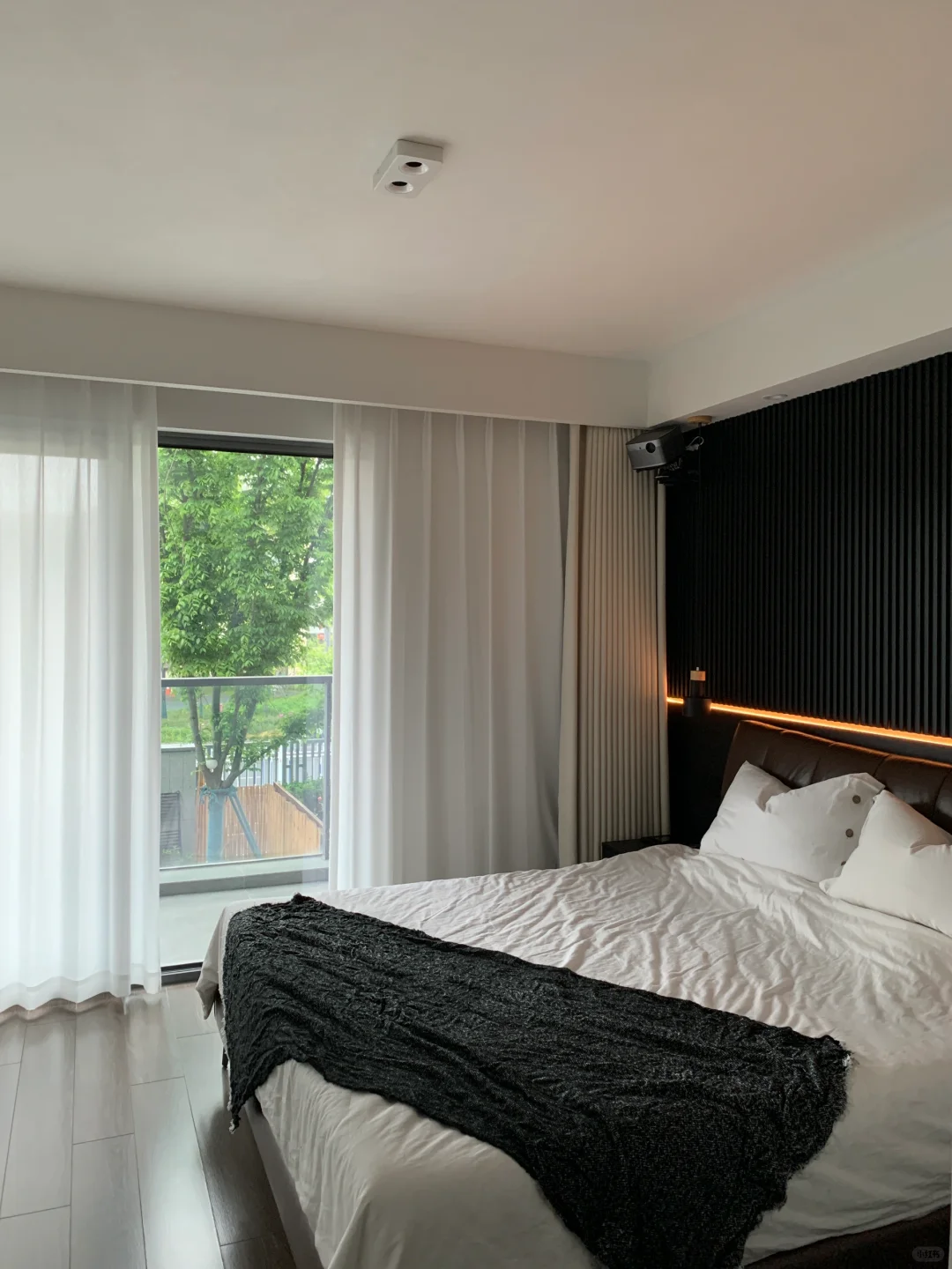 花了400+块。这是我全靠软装装修出来的房间。黑色床头背景墙真的超高级的,喜欢黑色就大胆用,黑色格珊真的美爆了。