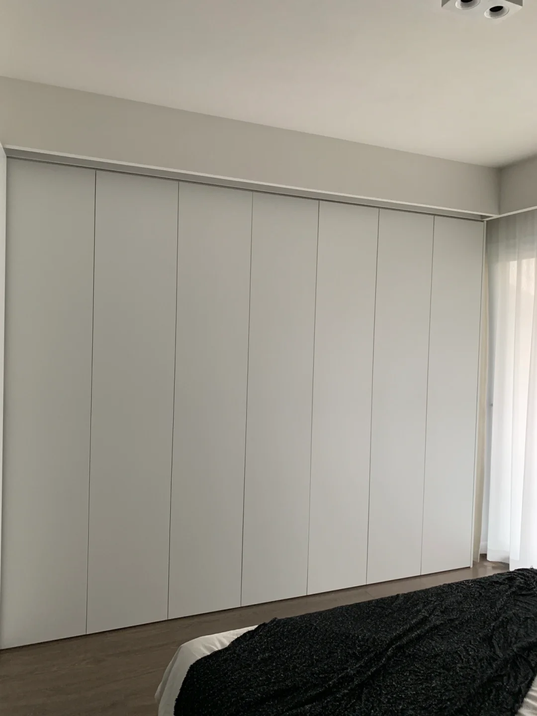 下面黑色是和床头柜连接在一起的,做成了悬浮床头柜。