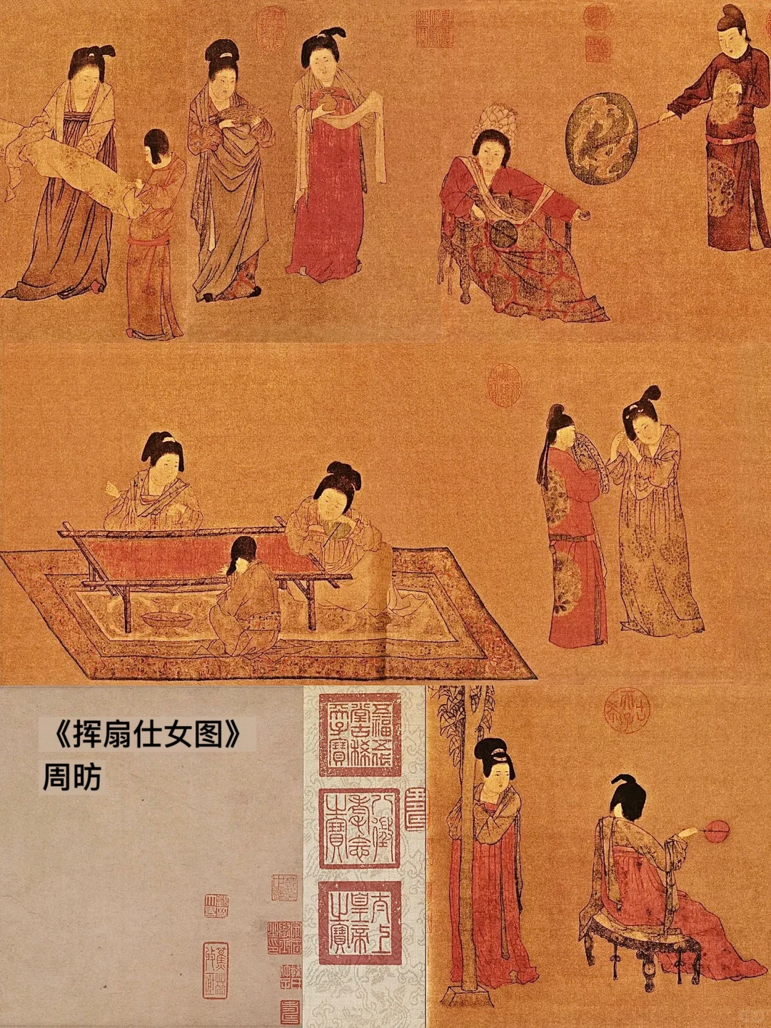 唐代中晚期画家周昉,则将这种希望,寄托于笔下画像。✨《挥扇仕女图》描绘了宫廷嫔妃百态,有人执扇抚琴、有人临镜围绣、也有人闲憩远眺,即便绮丽多姿,也遮掩不住空荡的灵魂。