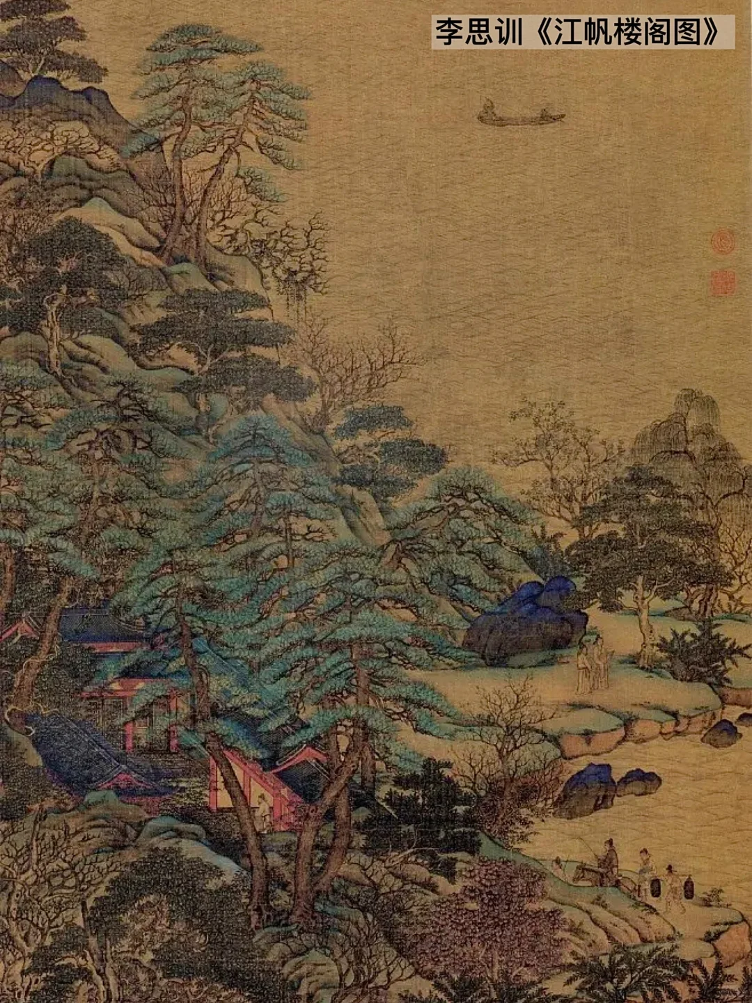 为此,宗室成员的李思训选择归隐,直至女皇去世,才画下青绿山水代表作✨《江帆楼阁图》,用万物生发,春意浓郁之景表达对李唐王朝复兴的期冀。