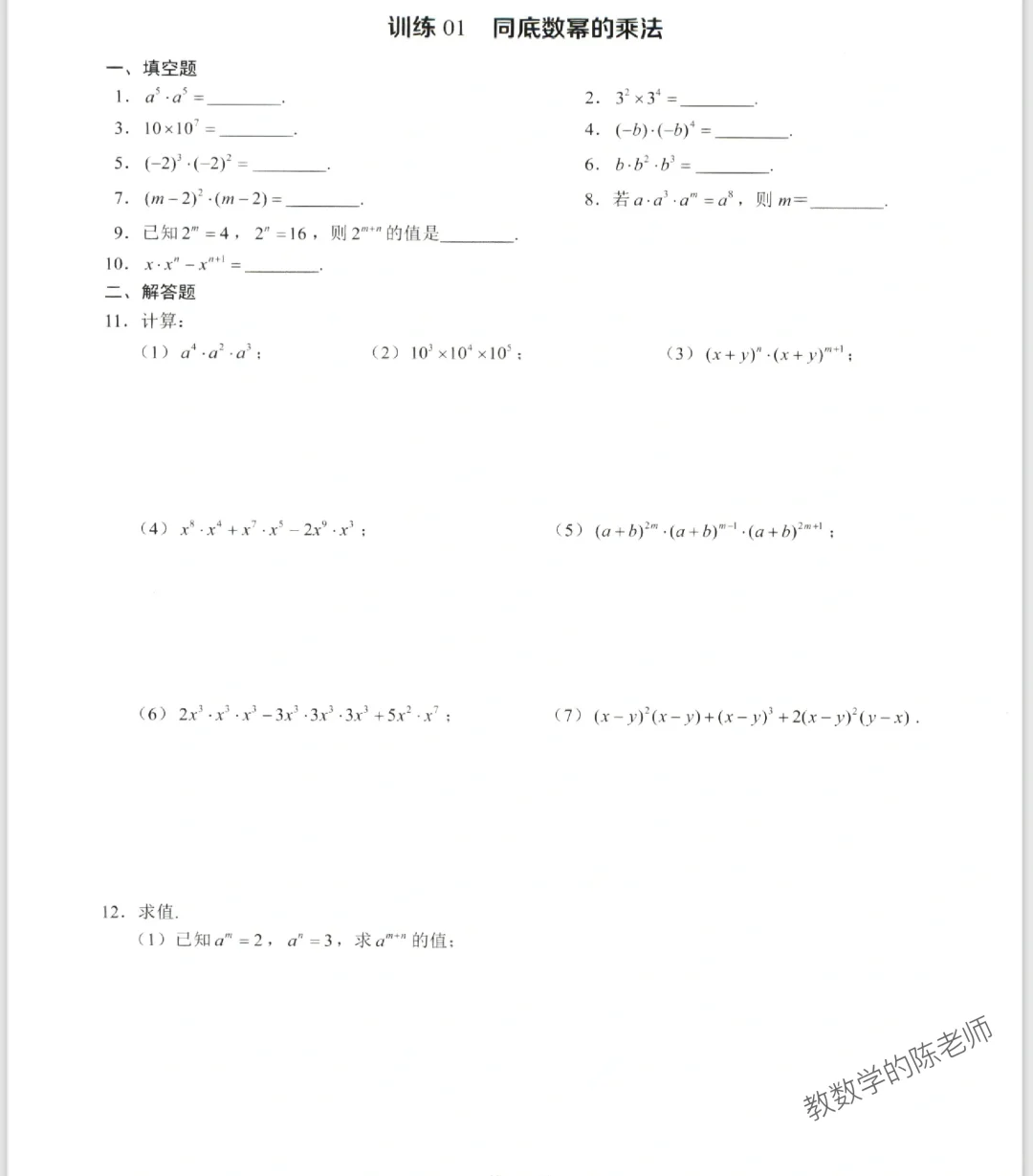 初二“同底数幂的乘法”专项练习‼️