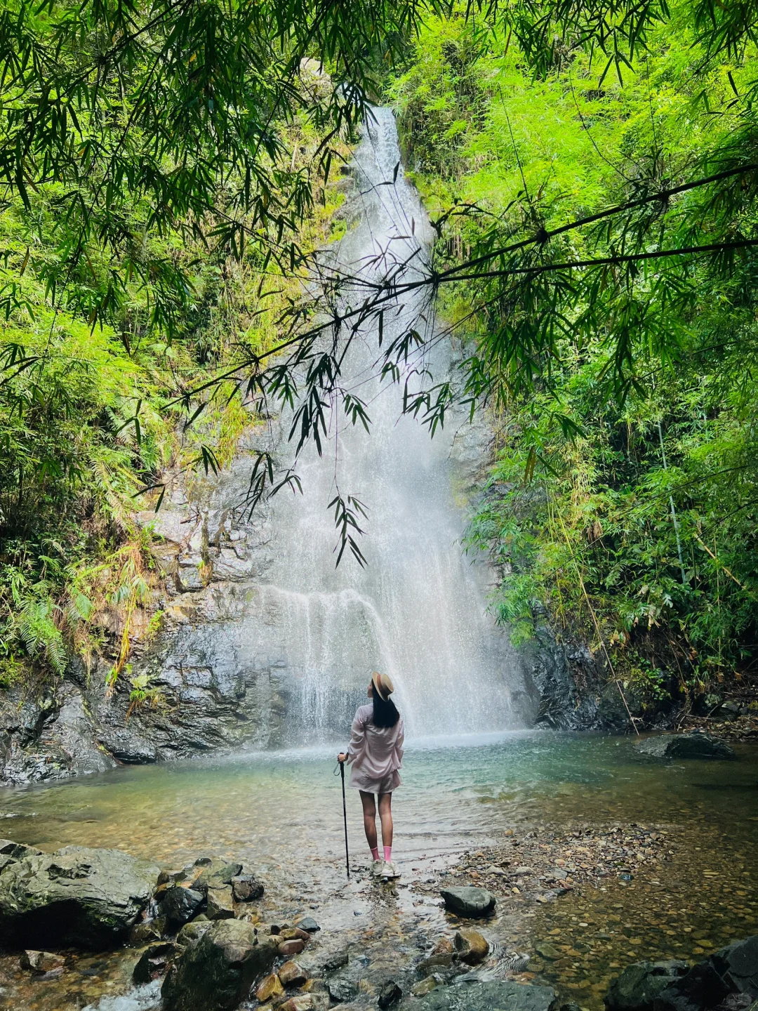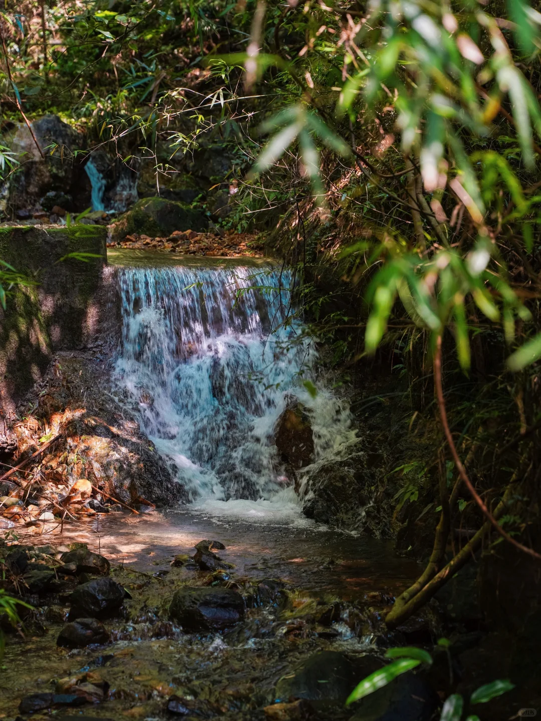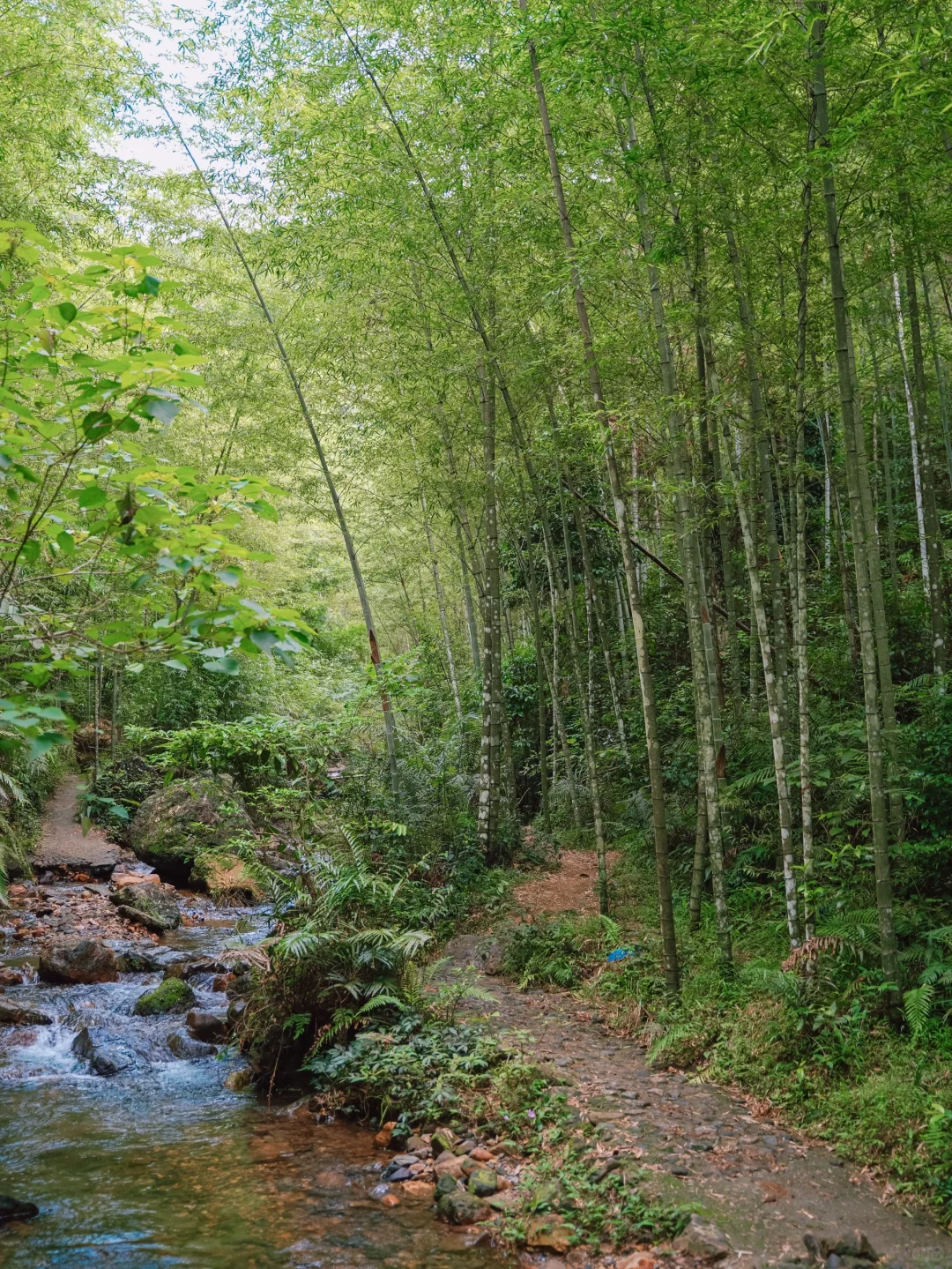 溪流伴着竹林小路,走到终点就能看到大瀑布,