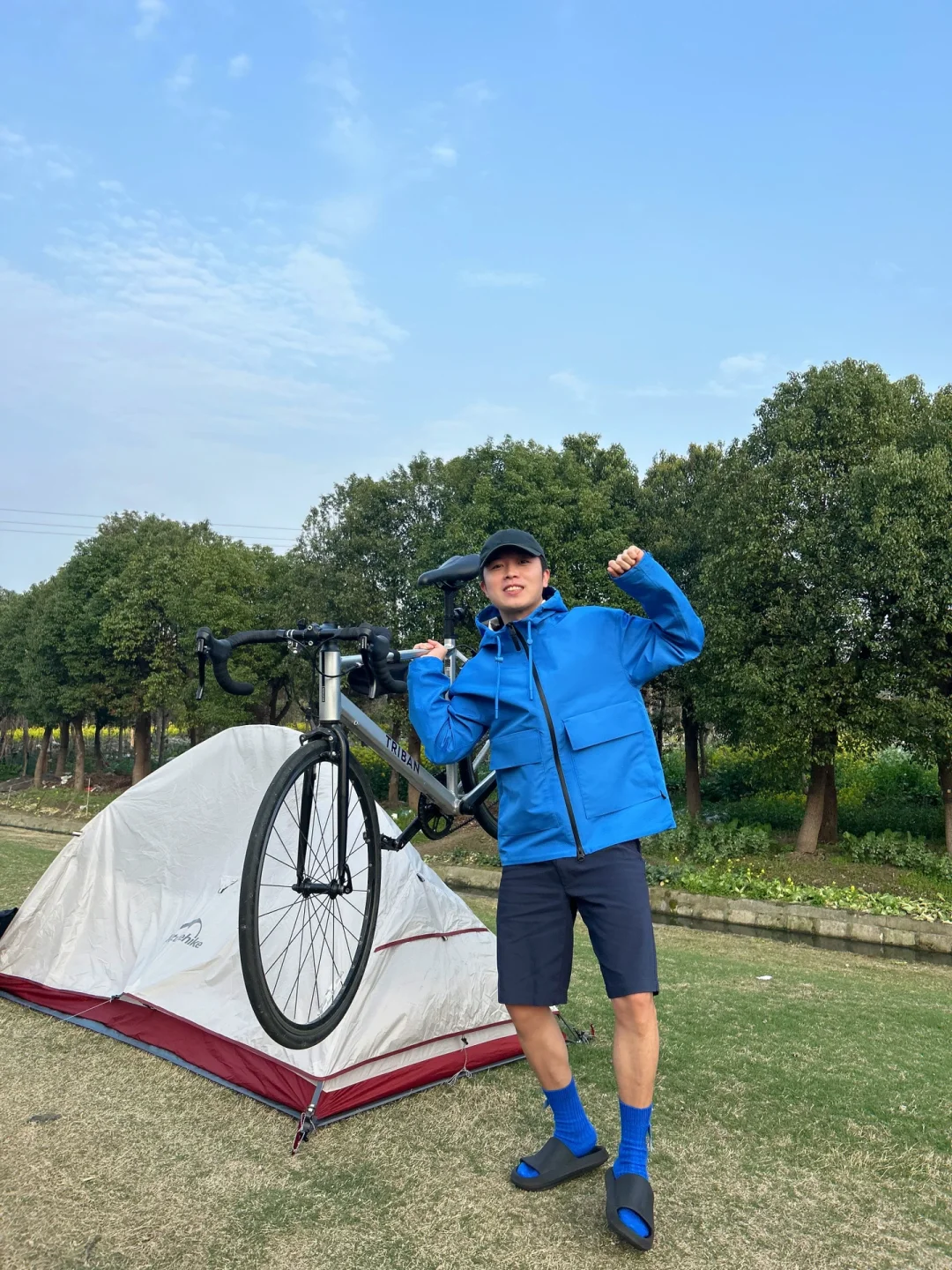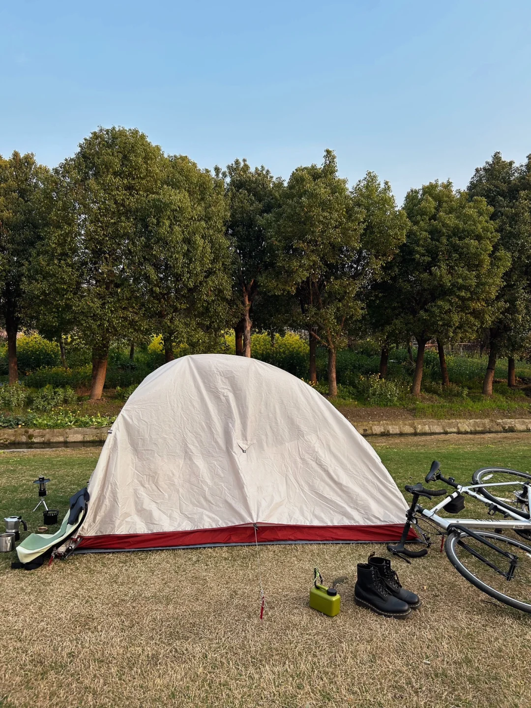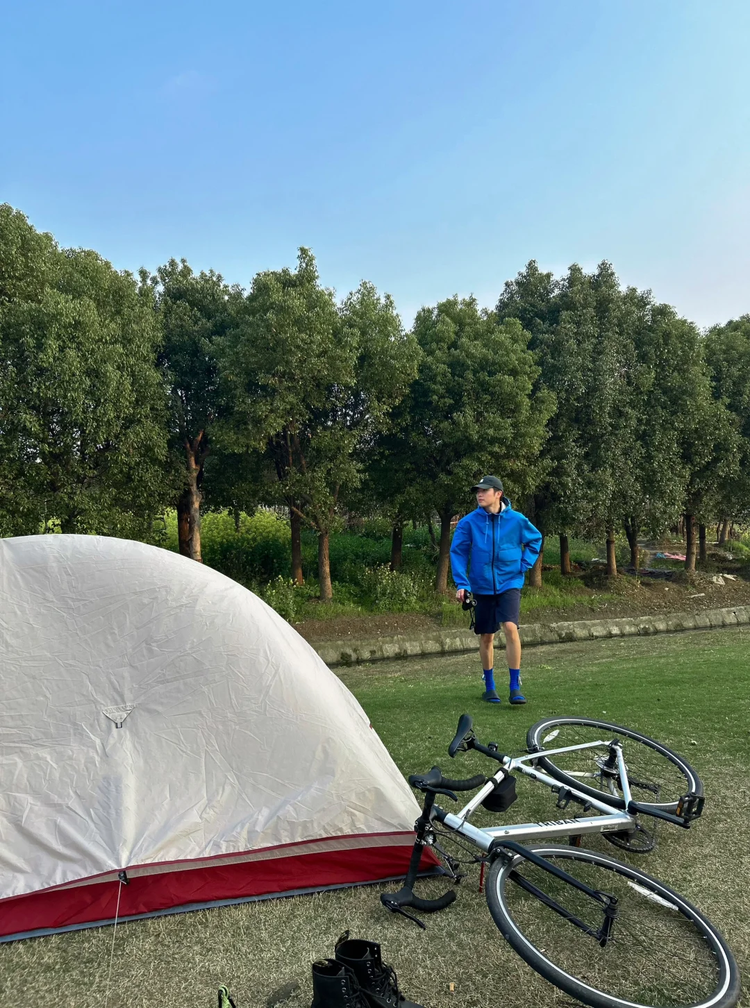 感觉现在帐篷和七龙珠里的胶囊一样,打开变帐篷🏕️。本来说今天下雨,所以随身背了帐篷,穿了喜欢的蓝色雨衣。 后面骑累了,看到路边有人在露营,然后我也在边上搭起了帐篷。不得不说,骑行➕露营的方式,真的很适合周末出行,🚴➕⛺️ 谁还不是有车有房的人了~[吃瓜R]