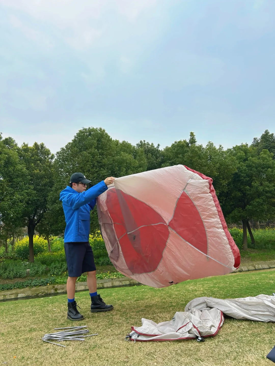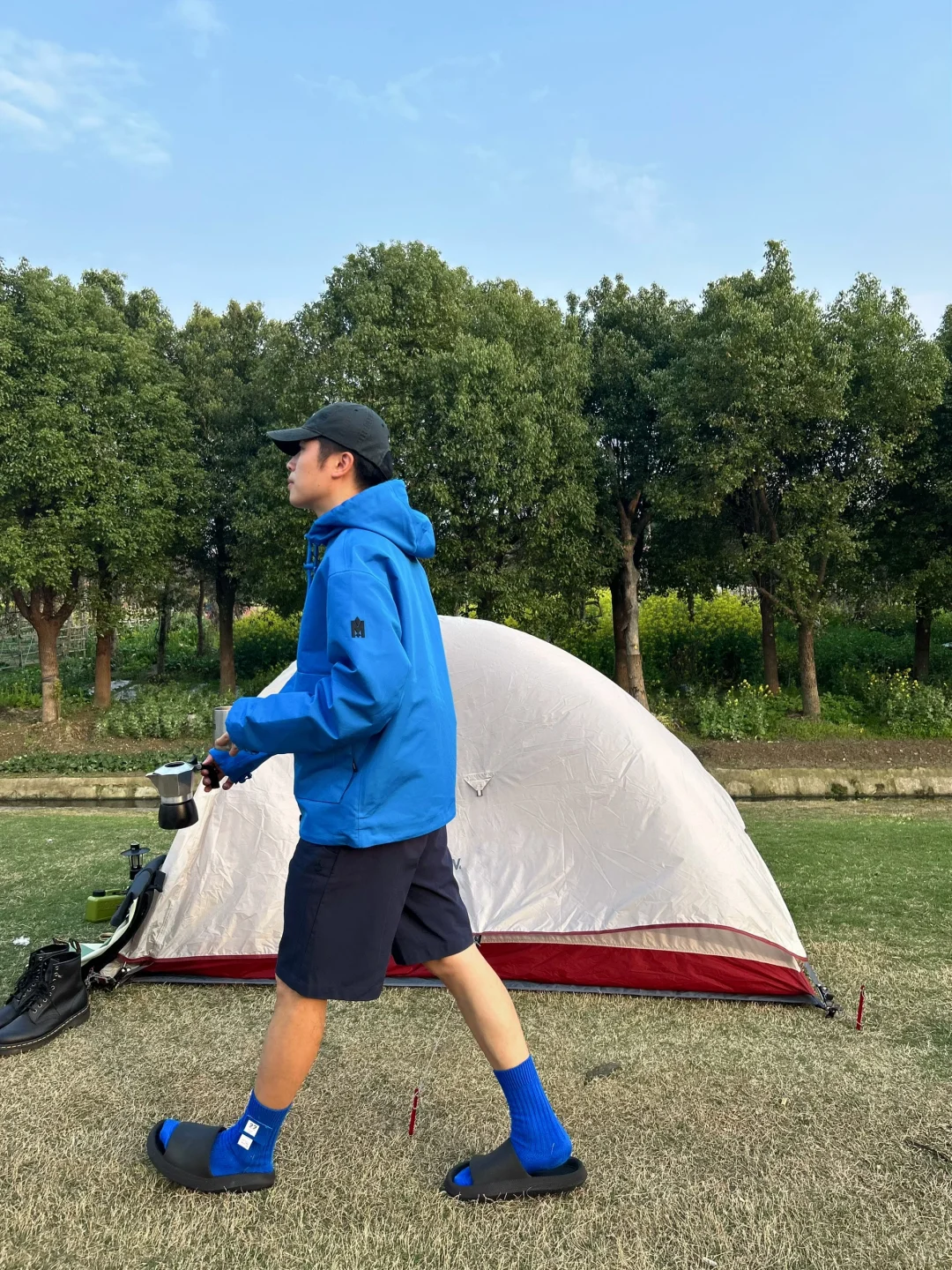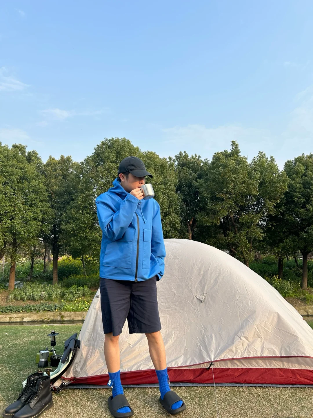 感觉现在帐篷和七龙珠里的胶囊一样,打开变帐篷🏕️。本来说今天下雨,所以随身背了帐篷,穿了喜欢的蓝色雨衣。 后面骑累了,看到路边有人在露营,然后我也在边上搭起了帐篷。不得不说,骑行➕露营的方式,真的很适合周末出行,🚴➕⛺️ 谁还不是有车有房的人了~[吃瓜R]