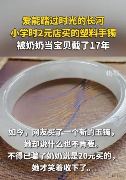 “太感人了!”广东,一女子小学时,在2元店给奶奶买了一个塑料手镯,被奶奶当做宝贝一样戴了17年,待女子长大后,给奶奶买了一个玉手镯,奶奶始终不愿舍弃旧手镯,奶奶下一秒对女子说的话,令不少网友泪目!