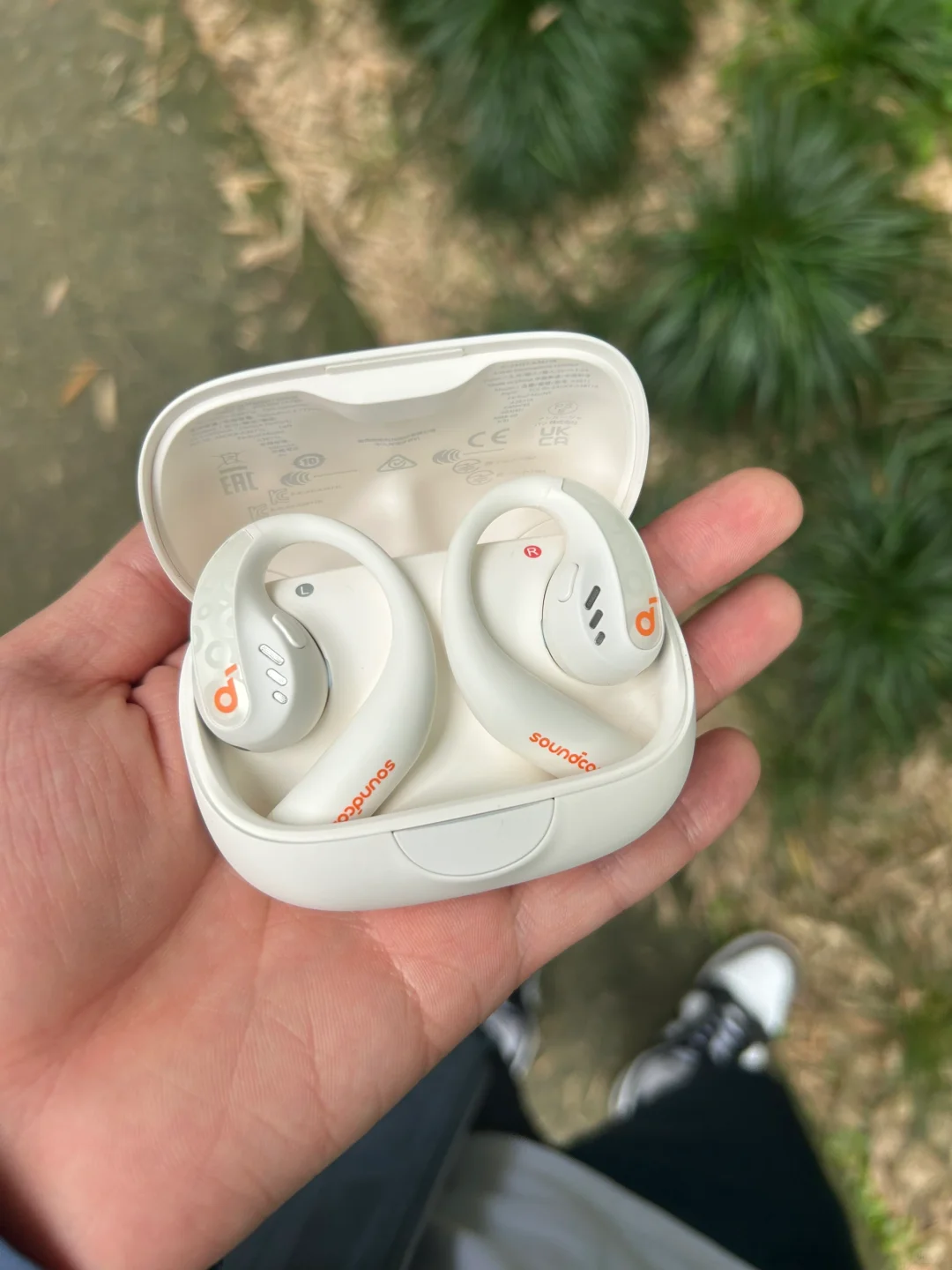 西湖边跑步太舒服了,这种时候没有音乐怎么行! 戴了风很大的声阔飞跃线,实物拿到手确实很有质感。早就不想再被震懵脑瓜子的骨传导折磨了,戴着这款气传导绕着西湖一圈下来都没有不适,不闷不堵舒适度一绝!声音质感也比骨传导强太多,很立体有空间感。同时也能听到环境音,在西湖这种游客熙熙攘攘的旅游胜地跑步佩戴再合适不过了。 有两种佩戴方法也是我选择声阔飞跃线的一个原因!蹦跳热身和跑步时戴上后挂就很稳定;运动完摘下挂绳直接挂耳戴,走到in77买杯饮料,秒变运动潮人。当然续航也很棒啦🔋基本一周一充即可。推荐👍