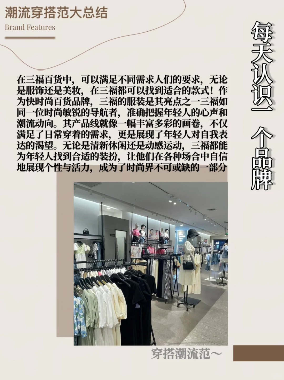 Hello!欢迎各位宝子们来到潮流穿搭范!今天给大家带来一个女生都很喜欢逛逛的品牌三福