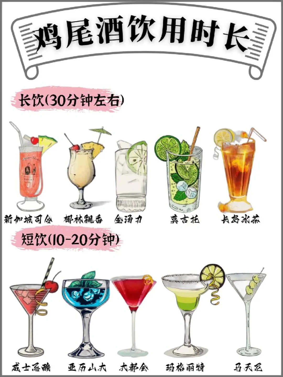 🥂为了方便理解,我们可以把鸡尾酒按照饮用时长或饮用时间段做区分。