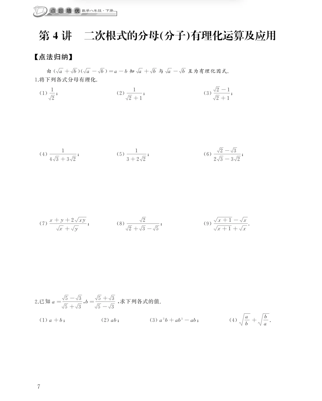 八年级数学下《二次根式的分母分子有理化》